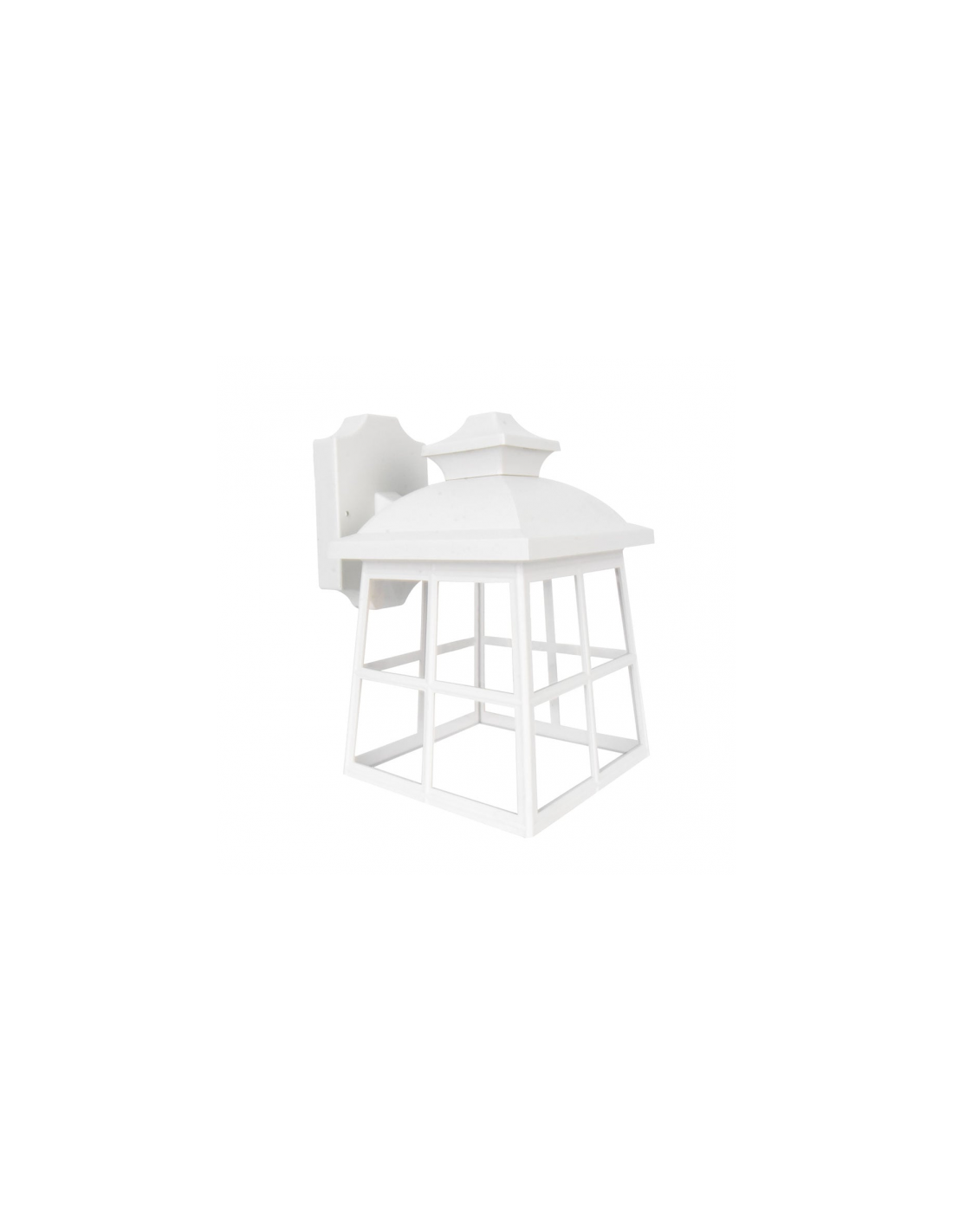 Aplique de exterior serie TAMARINDO realizado en Policarbonato de color BLANCO y estilo clásico. Sus dimensiones son 27,5x17x22,3 centímetros. Contiene un portalámpara E27. Está recomendado para exterior y el índice de protección es de IP44. Tiene un peso NETO de 660 gramos. También disponible en Negro y Oro Viejo. Bombilla no incluida.