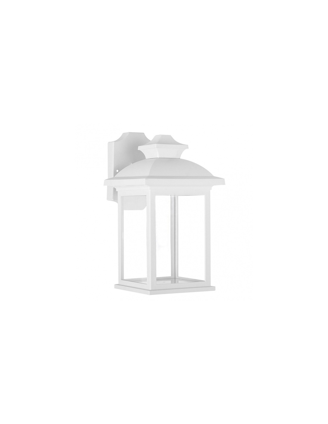 Aplique de exterior serie ALCANDIA realizado en Policarbonato de color BLANCO y estilo clásico. Sus dimensiones son 31x17x22,3 centímetros. Contiene un portalámpara E27. Está recomendado para exterior y el índice de protección es de IP44. Tiene un peso NETO de 810 gramos. También disponible en Negro y Oro Viejo. Bombilla no incluida.