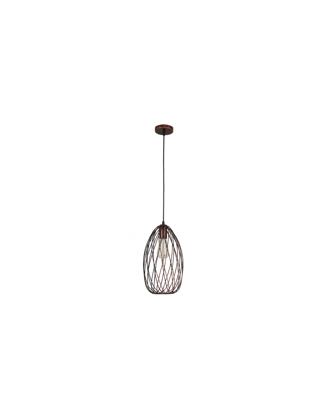 Colgante serie CORMORAN de color MARRON OXIDO. Realizado en metal con un portalámpara E27. Bombilla no incluida. Su diseño calado permite pasar la luz dándole un aspecto muy decorativo, con forma alargada en vertical y dejando ver la bombilla de su interior por lo que es muy recomendable optar por una bombilla de filamentos para respetar su estética. Es ideal para crear un punto de luz o combinar con otros colgantes creando una composición. Sus dimensiones, regulable en altura son de 45<,130x20x20 centímetros. De la misma serie también disponible el colgante ovalado con 40 centímetros de diámetro.