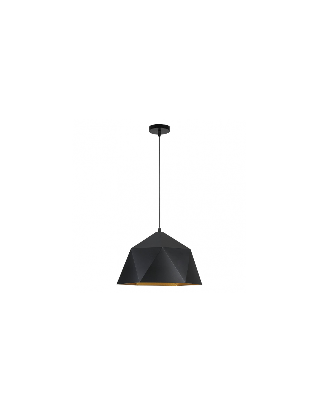 Colgante de la serie ALCATRAZ, de original y moderno diseño geométrico acabado en metal lacado en color NEGRO con interior de color oro. Sus dimensiones regulable en altura son de 35<,120x38x38 centímetros. Su peso neto es de 960 gramos y contiene un portalámparas E27. Bombilla no incluida. Modelo también disponible en Blanco-Oro.