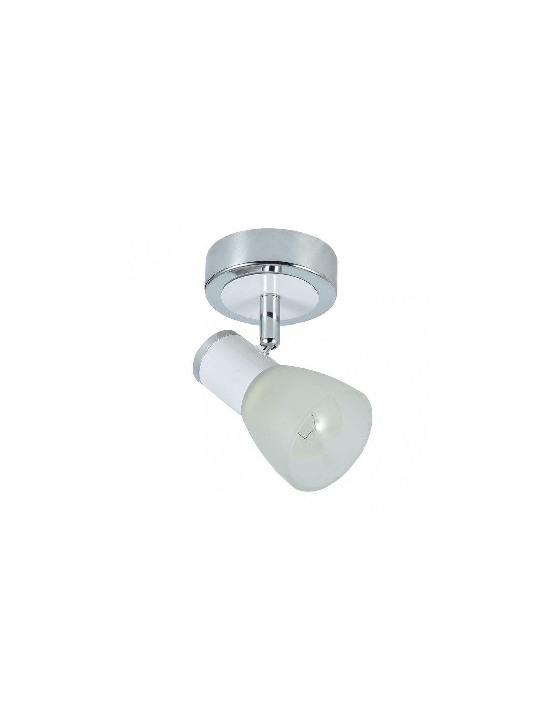 Foco serie CHOLO de color BLANCO/CROMO con tulipa de cristal. Realizado en metal y cristal con un portalámparas E14 . Bombilla no incluida. De diseño moderno con foco articulable verticalmente y con un giro horizontal de casi 360º permitiendo así dirigir el punto de luz hacia cualquier zona de la estancia. Sus dimensiones son 14X8,5X11,5 centímetros. Modelo también disponible en color cuero y en cromo/níquel, tanto en su versión de regleta de cuatro luces, regleta de tres luces y regleta de dos luces como en plafón de tres luces.