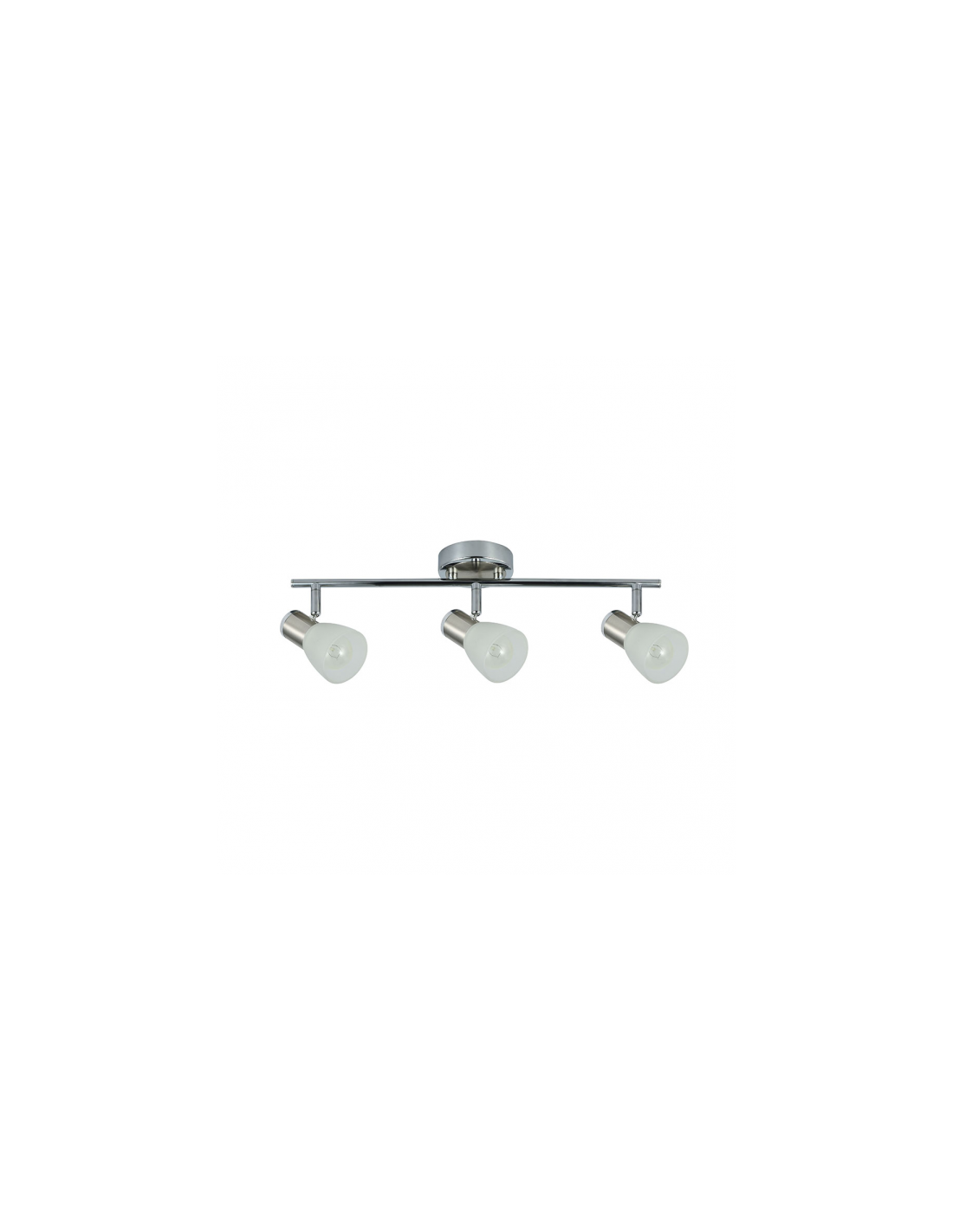 Regleta de tres focos serie CHOLO de color CROMO/NIQUEL con tulipas de cristal. Realizada en metal y cristal con tres portalámparas E14 . Bombillas no incluidas. De diseño moderno con focos articulables verticalmente y con un giro horizontal de casi 360º permitiendo así dirigir el punto de luz hacia cualquier zona de la estancia. Sus dimensiones son 16X48,5X10 centímetros. Modelo también disponible en color blanco/cromo y en cuero, tanto en su versión de cuatro luces, dos luces, foco de una luz y plafón de tres luces.
