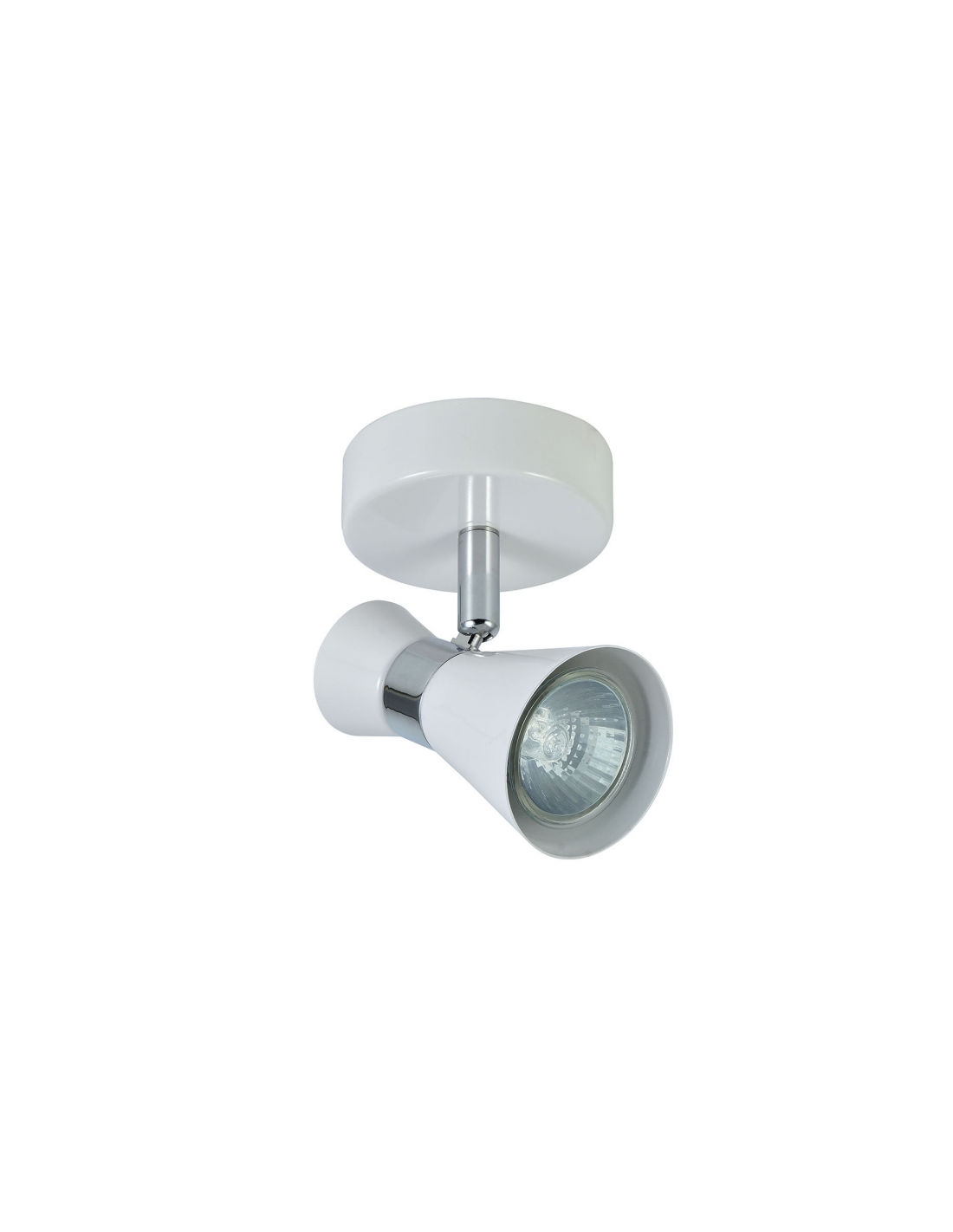 Foco de la serie MAXIMO de color BLANCO/CROMO. Realizado en metal con un portalámparas GU10 . Bombilla no incluida. De diseño moderno y original con foco articulable verticalmente y con un giro horizontal de casi 360º permitiendo así dirigir el punto de luz hacia cualquier zona de la estancia. Sus dimensiones son 15X12X8,5 centímetros. Modelo también disponible en color níquel/cromo y negro/cuero. Se puede completar la colección con la versión de regleta de cuatro luces, regleta de tres luces, regleta de dos luces y plafón de tres luces.