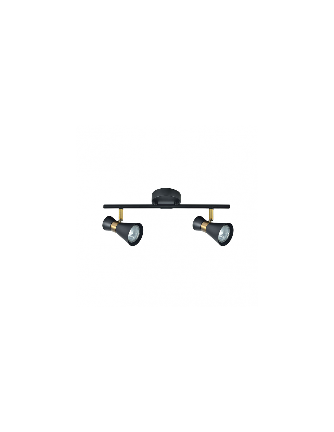 Regleta con dos focos de la serie MAXIMO de color NEGRO/CUERO. Realizada en metal con dos portalámparas GU10 . Bombillas no incluidas. De diseño moderno y original con focos articulables verticalmente y con un giro horizontal de casi 360º permitiendo así dirigir los puntos de luz hacia cualquier zona de la estancia. Sus dimensiones son 15X36,5X8,5 centímetros. Modelo también disponible en color blanco/cromo y níquel/cromo. Se puede completar la colección con la versión de regleta de cuatro luces, regleta de tres luces, plafón de tres luces y foco de una luz.