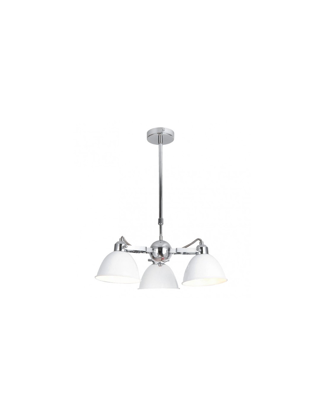 Lámpara serie BURI de tres luces. Cuerpo central con tres brazos realizado en metal de color CROMO y tulipas también metálicas y articulables de color BLANCO. Su diseño ofrece una versión sofisticada del estilo rústico urbano. Es ideal para grandes salones u hogares con estilos decorativos afines. Su dimensión, regulable en altura, es de 52<,81x42x42 centímetros. Posee tres porta lámparas en E27. Bombillas no incluidas. De la misma serie, también disponible la lámpara de cinco luces y la lámpara de dos luces para completar la colección.