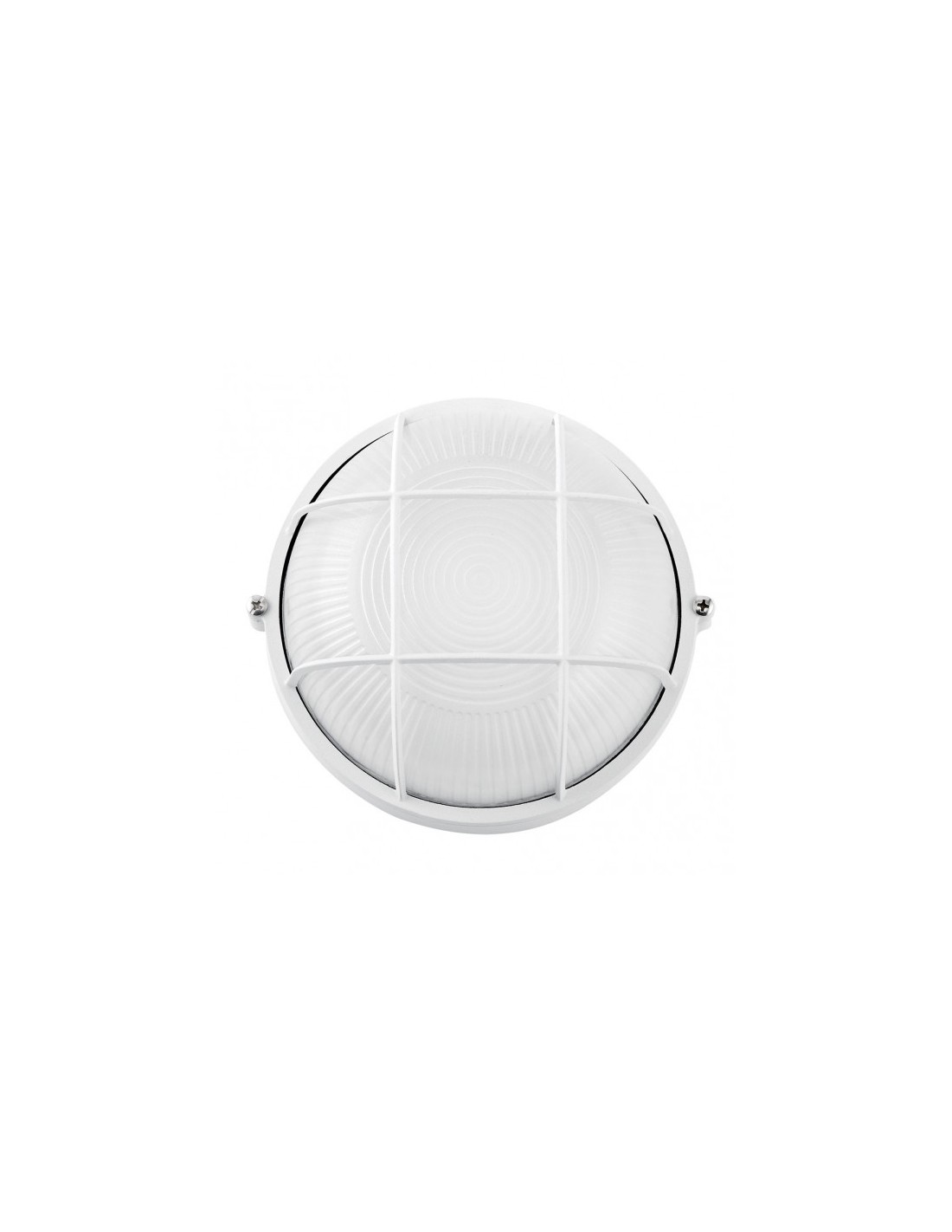 Aplique de exterior redondo serie APUS, realizado en aluminio color BLANCO y cristal. Tiene unas dimensiones de 11x25x25 centímetros. Posee un portalámparas E27. Bombilla no incluida. Tiene un índice de protección de IP44. Disponible en esta misma serie redondo pequeño de 17,5 centímetros de diámetro y oval en dos tamaños. Ambos diseños y tamaños en blanco y en negro.