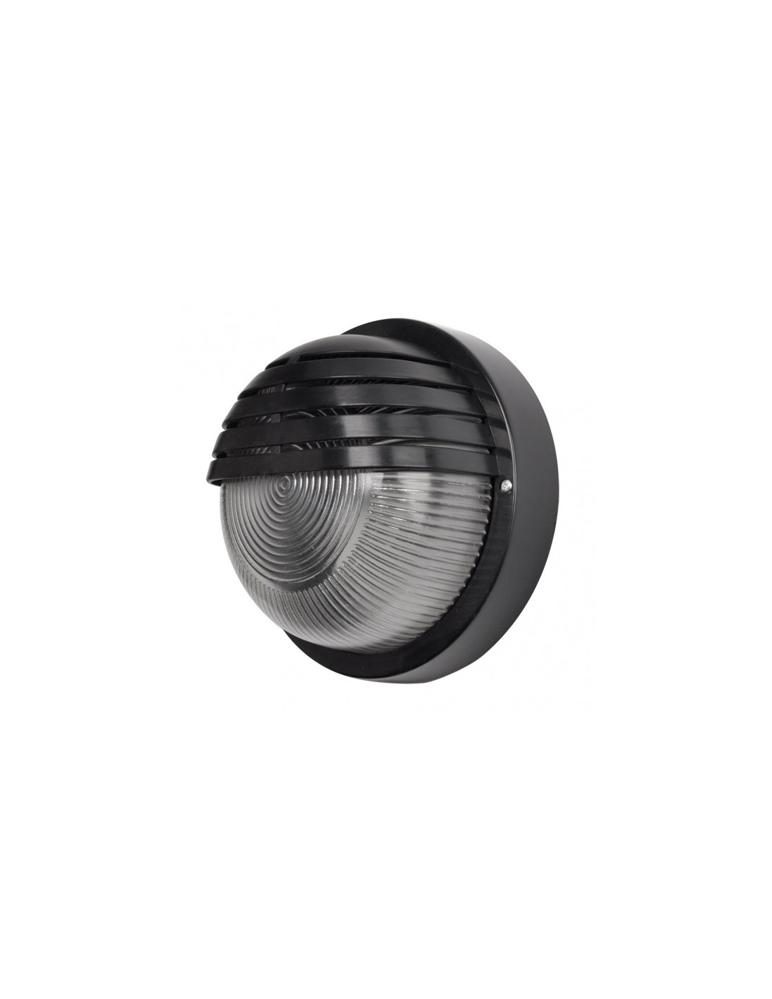 Aplique exterior redondo CANOPUS, realizado en policarbonato de color NEGRO. Tiene una dimensión de 18,5x18,5x9,5 centímetros. Posee un porta lámparas E27. Bombilla no incluida. Índice de protección IP44. Disponible de la misma serie, aplique grande oval y aplique pequeño oval, todos en negro y en blanco.