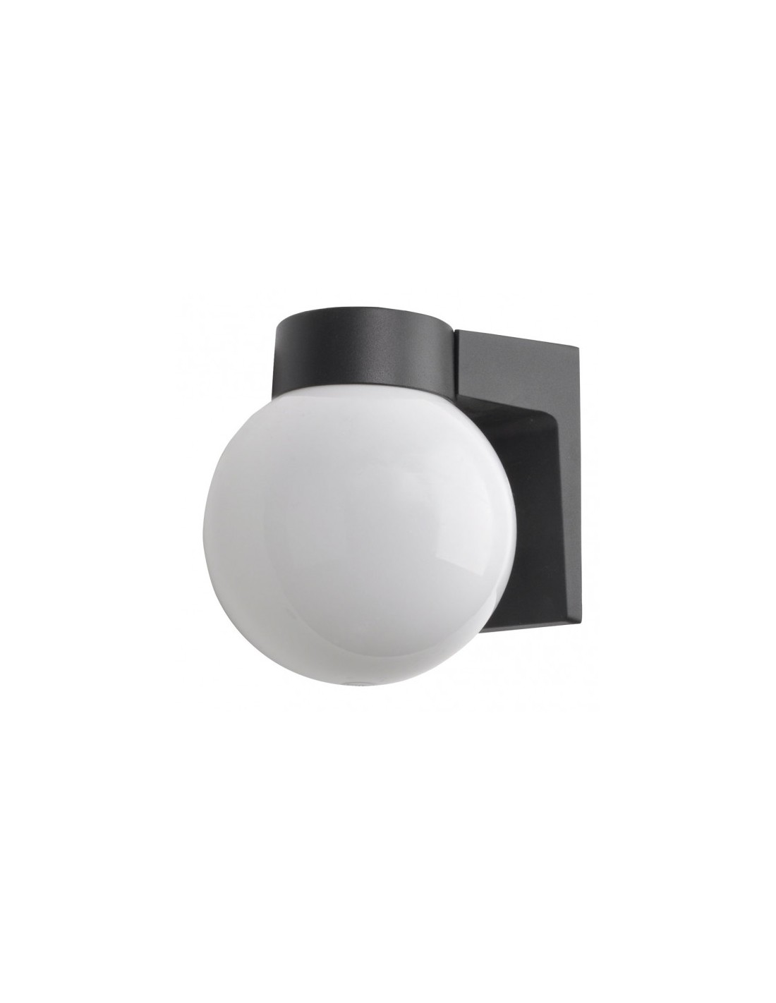 Aplique de exterior de la serie PROCYON de color NEGRO y tulipa de color BLANCO. Realizado en aluminio y policarbonato, materiales de calidad y resistentes. De estilo moderno y original, destacando su tulipa esférica con un agarre de diseño, ideal para iluminar, proteger y decorar el exterior de su hogar, también idóneos para colocar en patios, entradas y porches tanto de casas como de zonas de trabajo. Posee un portalámparas E27. Bombilla no incluida. Tiene unas dimensiones de 18x18x15 centímetros y un peso neto de 365 gramos. Su índice de protección es IP44. Modelo también disponible en color marrón y en color gris.