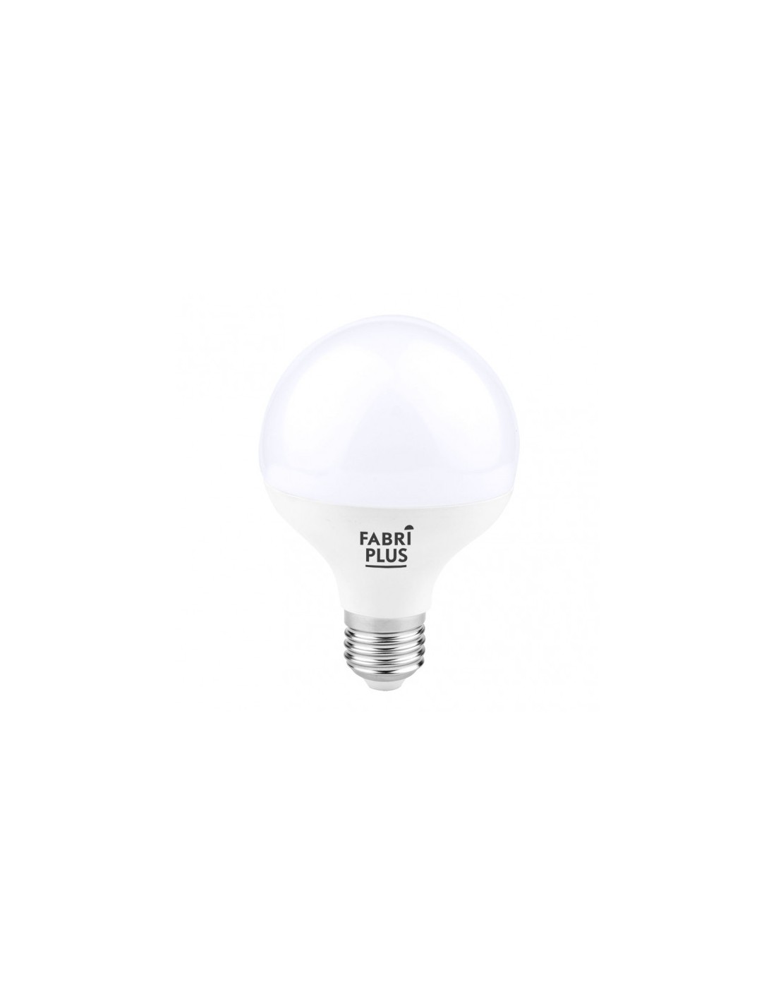 Bombilla LED GLOBO de la serie FABRIPLUS, realizada en policarbonato blanco y metal. Con portalámparas E27, tiene una potencia de luz de 15 watios, 1350 lúmenes y 6000 K de temperatura de luz, blanco frío. Sus medidas son de 14,5X9X9 centímetros y tiene un peso neto de 75 gramos.