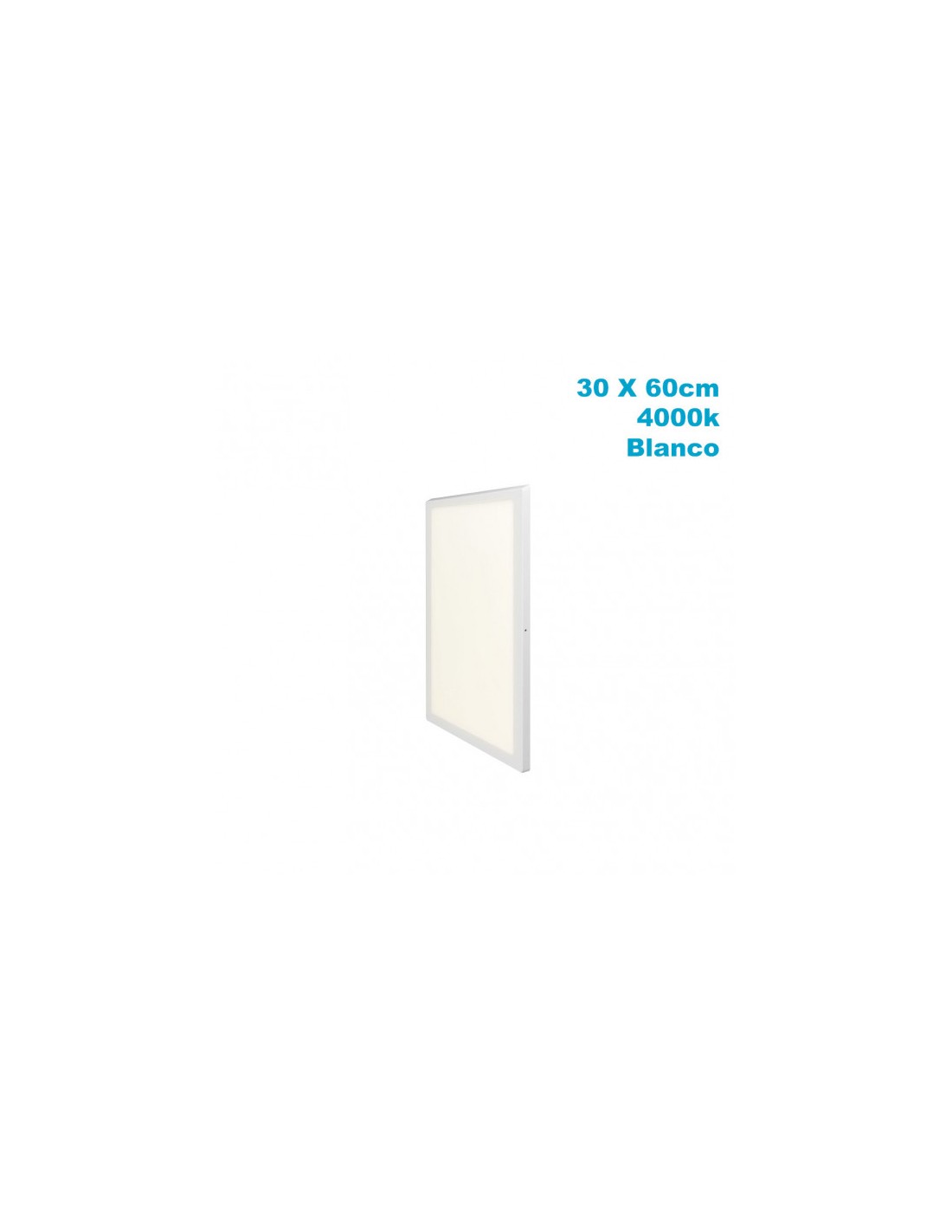 Panel de superficie de la serie PLANO en color BLANCO. Realizado en aluminio y policarbonato. Tiene una potencia de 36 watios, 3060 lúmenes y 4000K de temperatura de luz, blanco natural. Tiene una medida de 3,5X30X60 centímetros y un peso neto de 1150 gramos. En esta serie podemos encontrar varios tamaños de paneles de superficie, con sus correspondientes potencias, tanto en color blanco como en níquel.