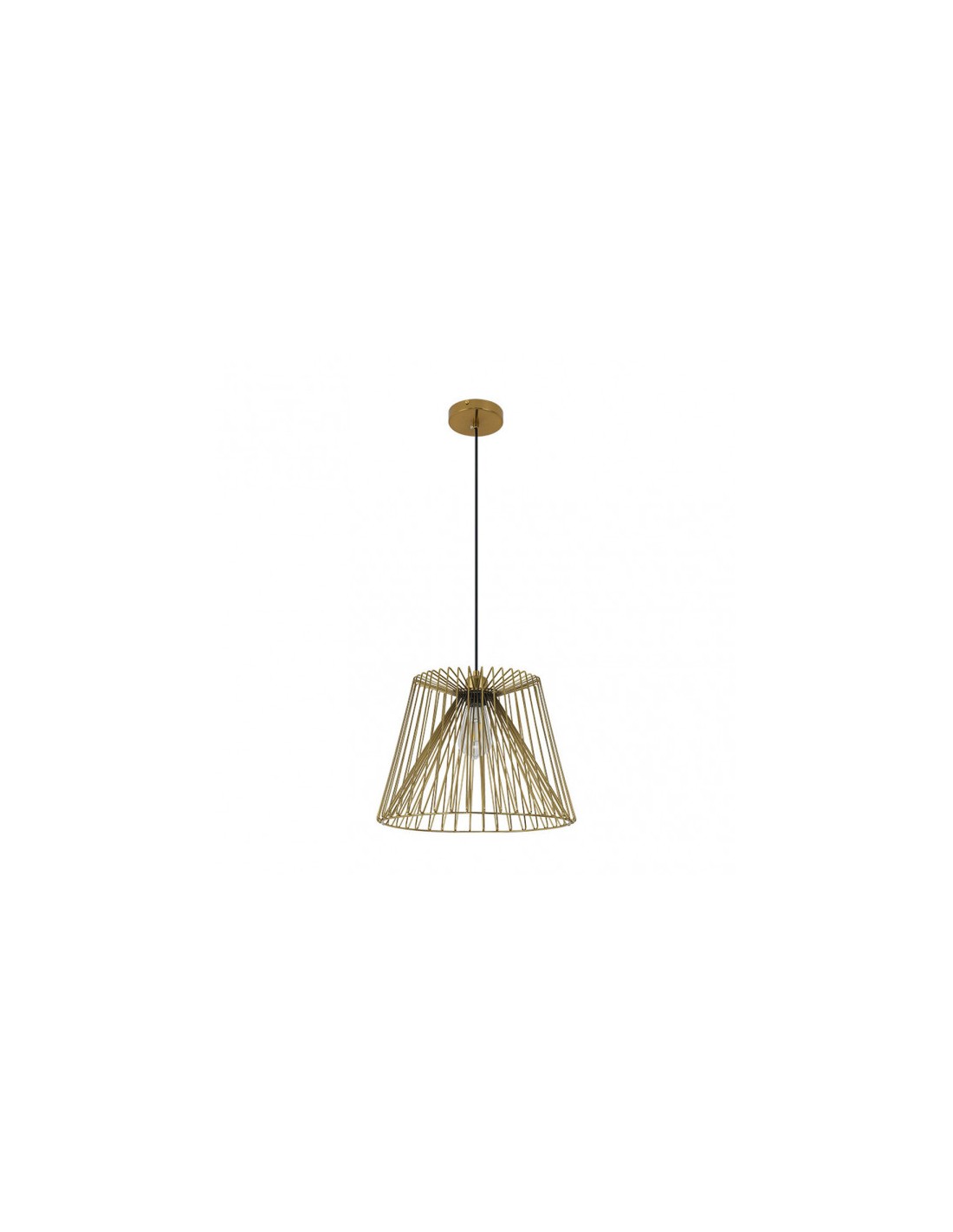 Colgante serie CAMELIA de color ORO. Realizado en metal con un portalámpara E27. Bombilla no incluida. Su diseño moderno de rejilla permite pasar la luz y ver la bombilla en su interior, resultando un elemento muy decorativo, recomendable optar por una bombilla de filamentos para respetar su estética. Es ideal para crear un punto de luz o combinar con otros colgantes creando una composición. Sus dimensiones, regulable en altura son de 42<,132x36x36 centímetros. De la misma serie también disponible el colgante 35 centímetros de diámetro.