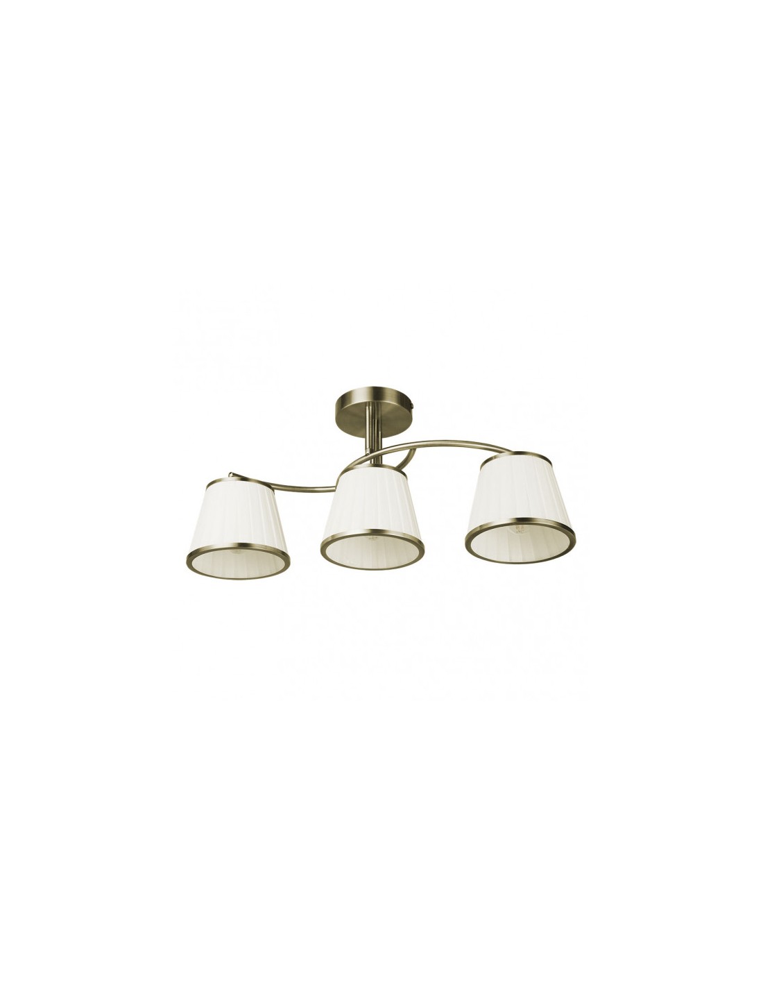 Lámpara de tres luces serie LANTANA de color CUERO con pantallas BEIS. Está realizado en metal y material textil. De estilo moderno con diseño elegante y original en su estructura, acompañado de pantallas plisadas y combinadas con metal, resultando un conjunto muy decorativo tanto para salones y salas de estar como para dormitorios o zonas de trabajo. Sus dimensiones son 24x56x15,5 centímetros. Posee tres portalámparas en E27. Bombillas no incluidas. Está disponible también el sobremesa, lámpara de dos luces y lampara de cuatro luces en esta misma serie. También podemos encontrar todos estos modelos en color cromo con pantalla blanca.