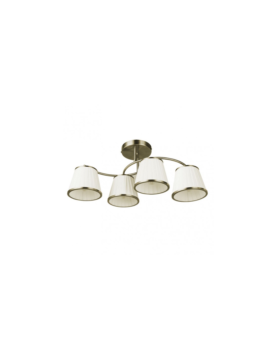 Lámpara de cuatro luces serie LANTANA de color CUERO con pantallas BEIS. Está realizado en metal y material textil. De estilo moderno con diseño elegante y original en su estructura, acompañado de pantallas plisadas y combinadas con metal, resultando un conjunto muy decorativo tanto para salones y salas de estar como para dormitorios o zonas de trabajo. Sus dimensiones son 24x64x31,5 centímetros. Posee cuatro portalámparas en E27. Bombillas no incluidas. Está disponible también el sobremesa, lámpara de dos luces y lampara de tres luces en esta misma serie. También podemos encontrar todos estos modelos en color cromo con pantalla blanca.