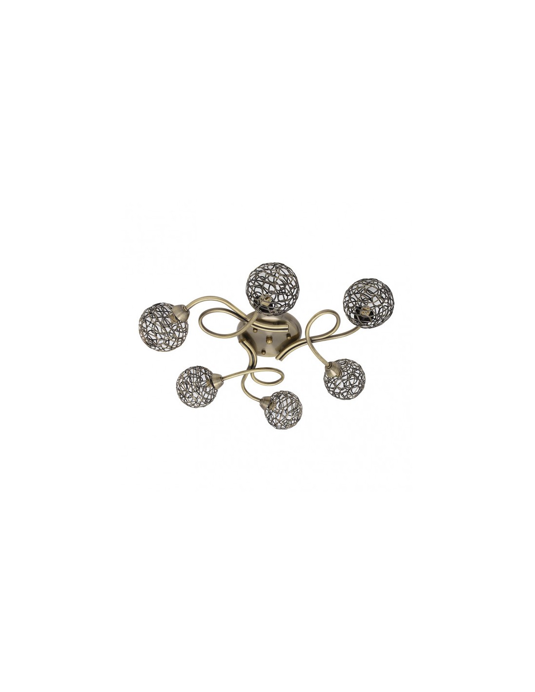 Lámpara serie LYON de seis luces, realizada en metal color CUERO. Original y moderno diseño de su estructura, de la cual nacen sus tulipas formadas por una maraña de hilos metálicos, que dejan ver el interior, resultando una composición muy decorativa. Tiene unas medidas de 15x60x60 centímetros y un peso neto 1205 gramos. Tiene seis portalámparas en G9. Bombillas no incluidas. Se puede completar la decoración de su hogar con la lámpara de cuatro luces, sobremesa y aplique de color cuero. También disponibles en color cromo.