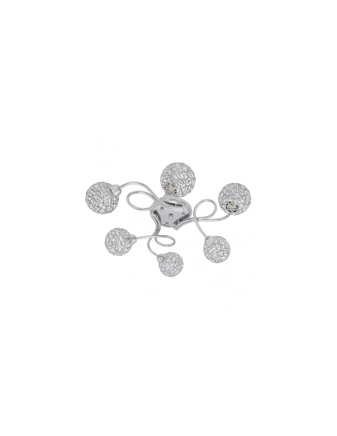 Lámpara serie LYON de seis luces, realizada en metal color CROMO. Original y moderno diseño de su estructura, de la cual nacen sus tulipas formadas por una maraña de hilos metálicos, que dejan ver el interior, resultando una composición muy decorativa. Tiene unas medidas de 15x60x60 centímetros y un peso neto 1205 gramos. Tiene seis portalámparas en G9. Bombillas no incluidas. Se puede completar la decoración de su hogar con la lámpara de cuatro luces, sobremesa y aplique de color cromo. También disponibles en color cuero.