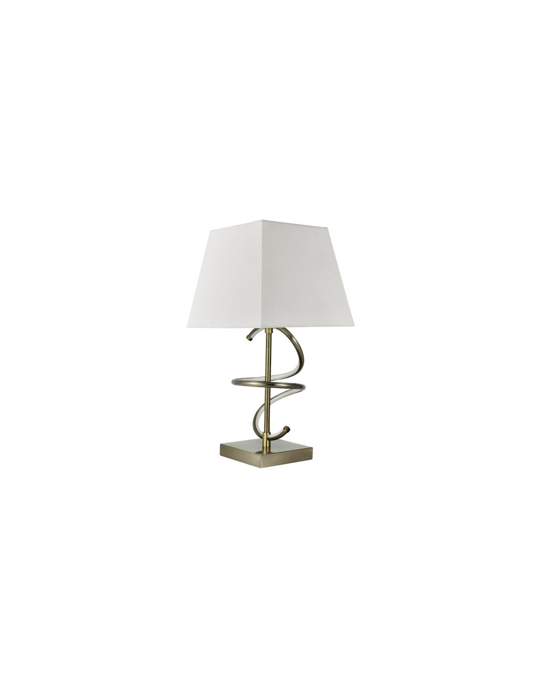 Sobremesa serie NUEVA YORK de color CUERO y pantalla BLANCO ROTO. Está realizado en metal y material textil. Presenta un diseño muy original de una estructura enroscada sobre sí misma CON LUZ, con TECNOLOGÍA LED INTEGRADO de 8 watios de potencia, 600 lúmenes y 4000K (luz natural), creando un juego lumínico muy bonito y moderno, sobre la cual descansa una pantalla cuadrada. Su portalámpara superior es E27. Bombilla no incluída. Con dos encendidos independientes, para que usted pueda elegir el tipo de luz deseado. Ideal para decorar e iluminar cualquier estancia de la casa, siendo el complemento perfecto. Tiene una dimensión de 44x23x23 centímetros. Modelo también disponible en color cromo con pantalla Blanca.