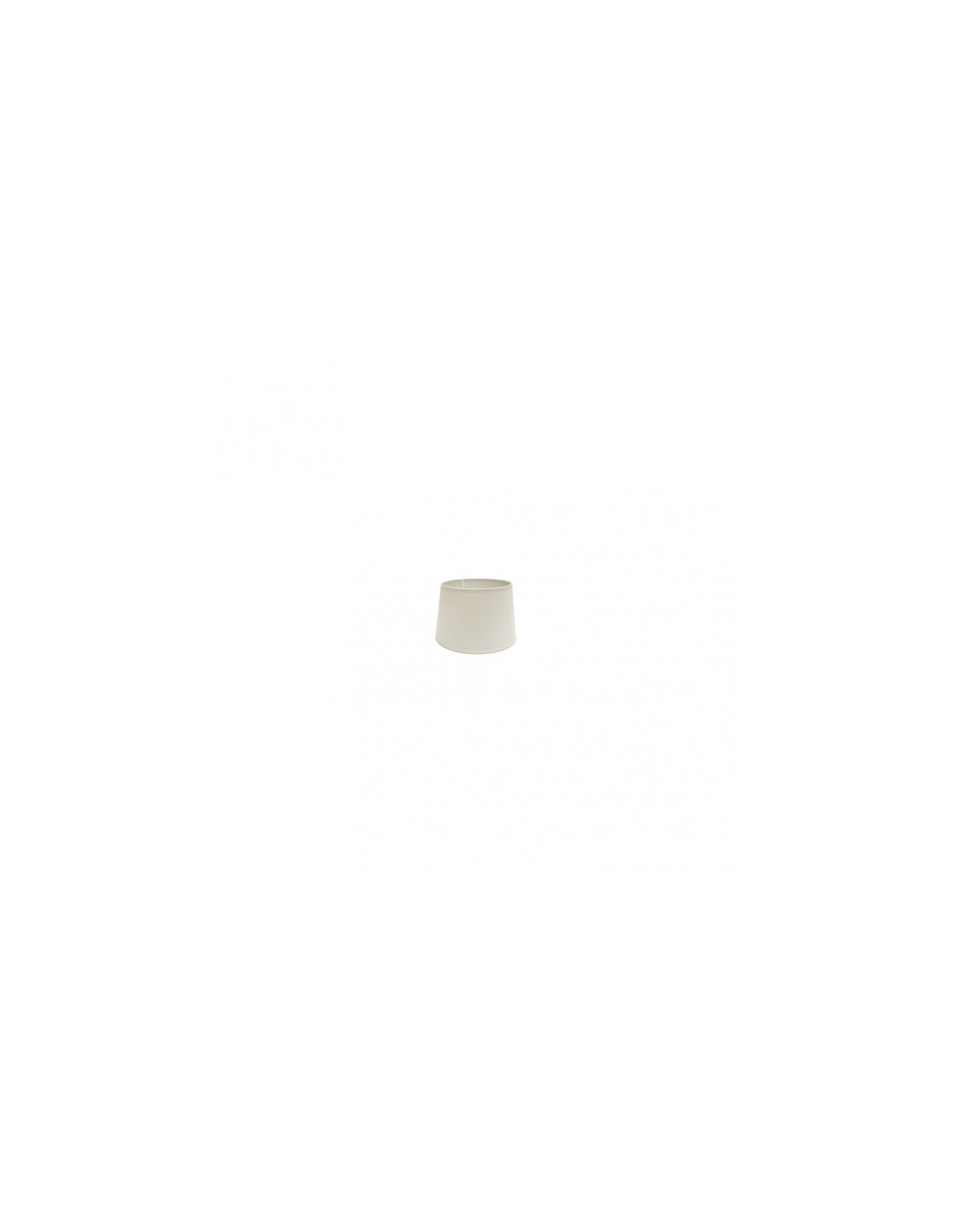 Pantalla cónica abierta serie CLARA de color BEIS. Realizado en material textil popelín. Diseñada para agarre con pinza. Sus dimensiones son de 10x8x8 centímetros y un peso neto de 50 gramos. También disponible en color blanca y en varios tamaños.