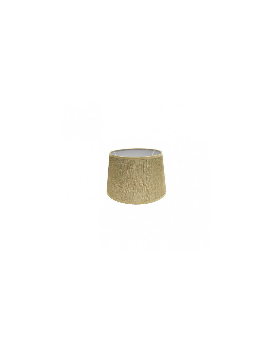 Pantalla cónica abierta serie IRENE de color BEIS. Realizado en material textil saco-yute. Diseñada para un portalámparas E27. Sus dimensiones son de 20x15x12 centímetros y un peso neto de 105 gramos. También en varios tamaños, desde 45 a 10 centímetros de diámetro.