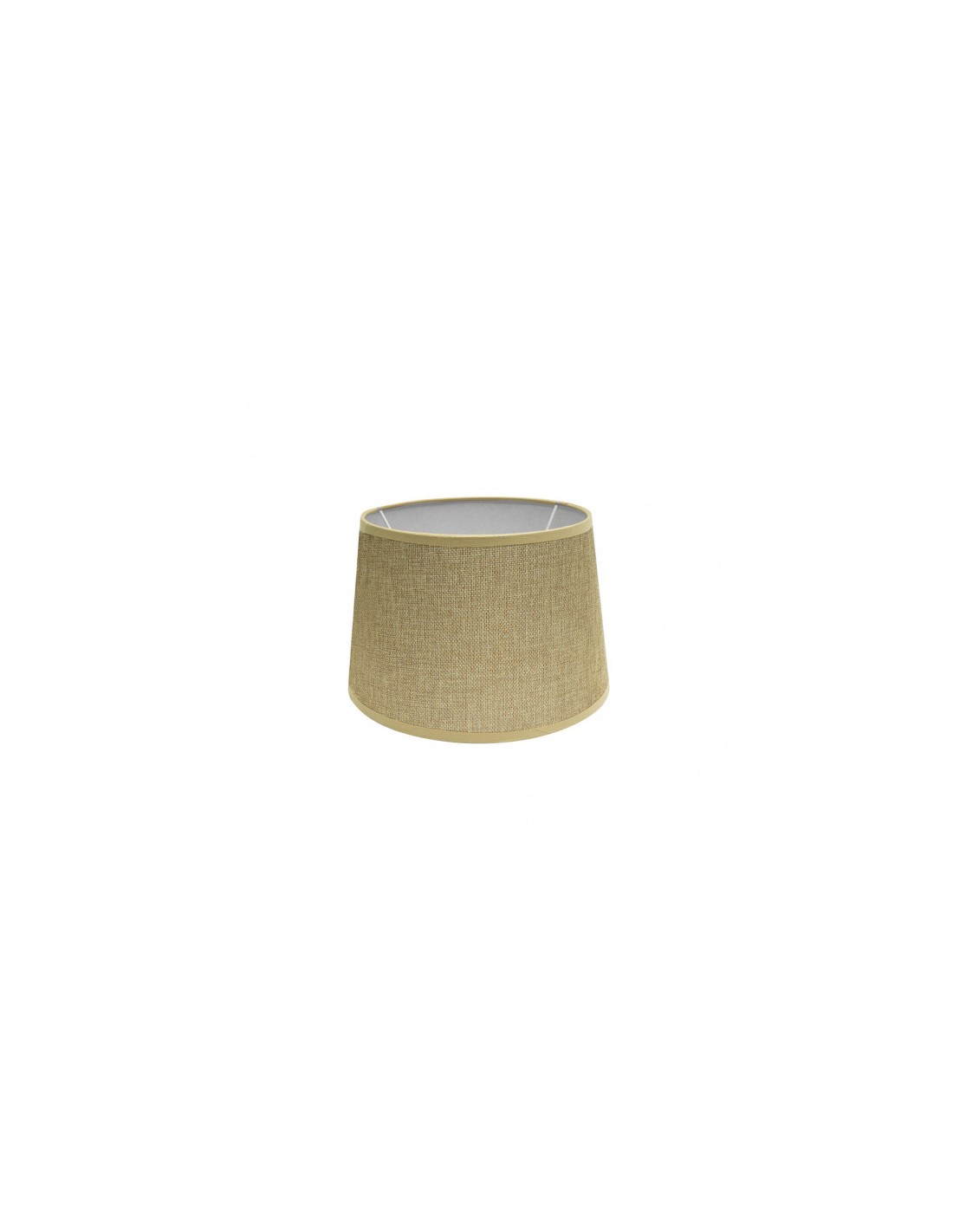 Pantalla cónica abierta serie IRENE de color BEIS. Realizado en material textil saco-yute. Diseñada para un portalámparas E27. Sus dimensiones son de 25x20x15 centímetros y un peso neto de 165 gramos. También en varios tamaños, desde 45 a 10 centímetros de diámetro.