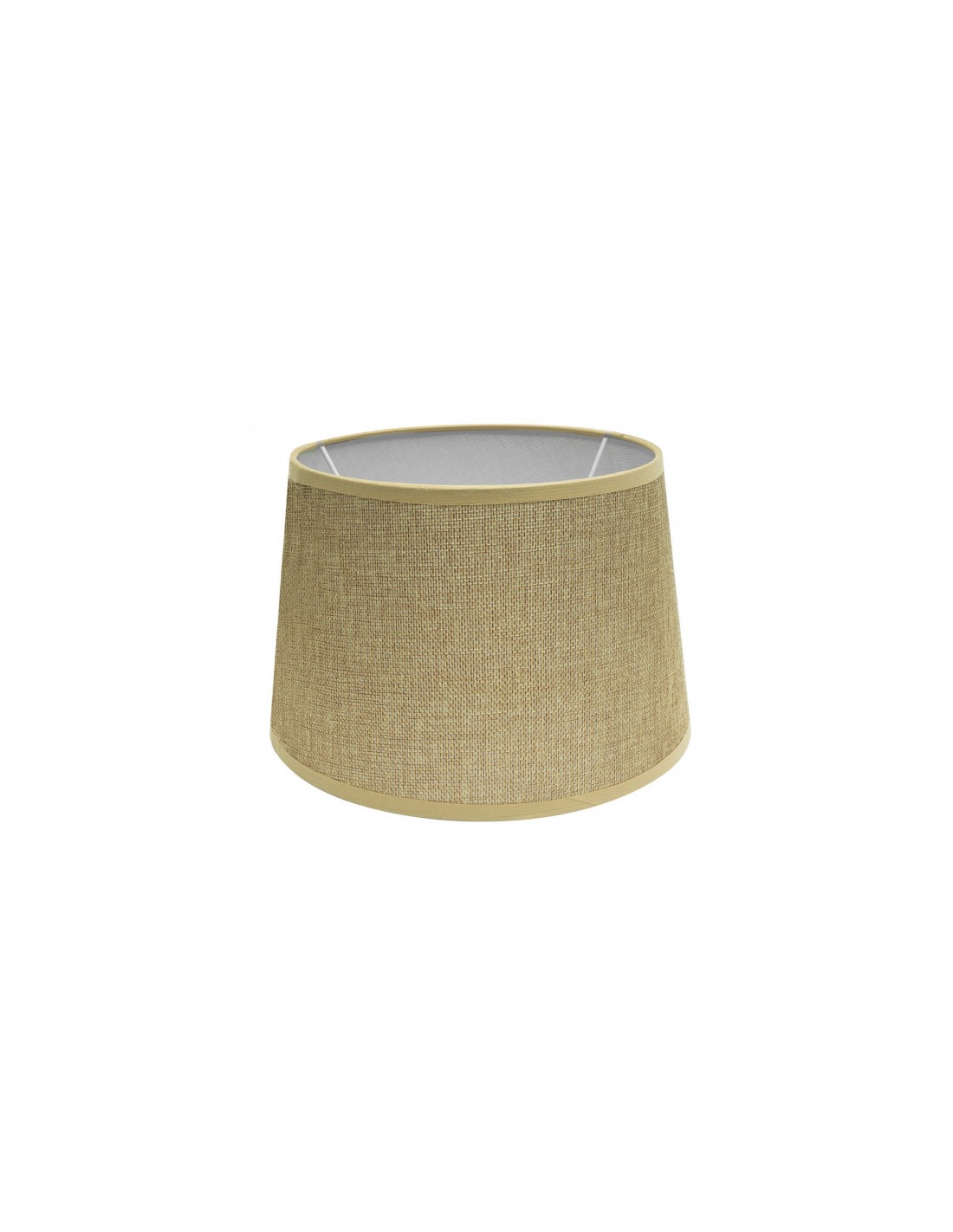 Pantalla cónica abierta serie IRENE de color BEIS. Realizado en material textil saco-yute. Diseñada para un portalámparas E27. Sus dimensiones son de 40x30x25 centímetros y un peso neto de 325 gramos. También en varios tamaños, desde 45 a 10 centímetros de diámetro.