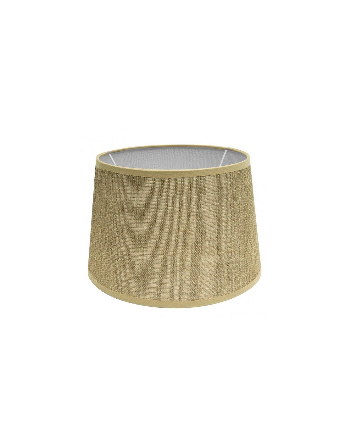 Pantalla cónica abierta serie IRENE de color BEIS. Realizado en material textil saco-yute. Diseñada para un portalámparas E27. Sus dimensiones son de 45x35x30 centímetros y un peso neto de 500 gramos. También en varios tamaños, desde 45 a 10 centímetros de diámetro.