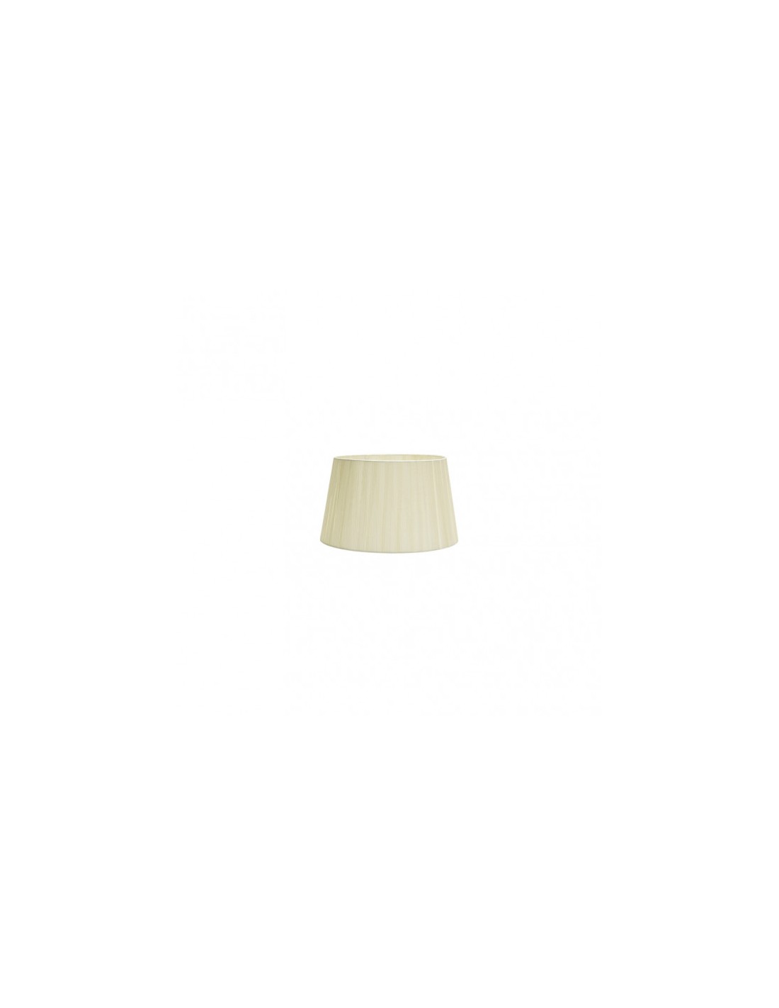 Pantalla cónica abierta serie LAURA de color BEIS. Realizado en material textil plisado tipo bambula. Diseñada para un portalámparas E27. Sus dimensiones son de 15x12x13 centímetros y un peso neto de 120 gramos. También disponible en color blanco y en varios tamaños.