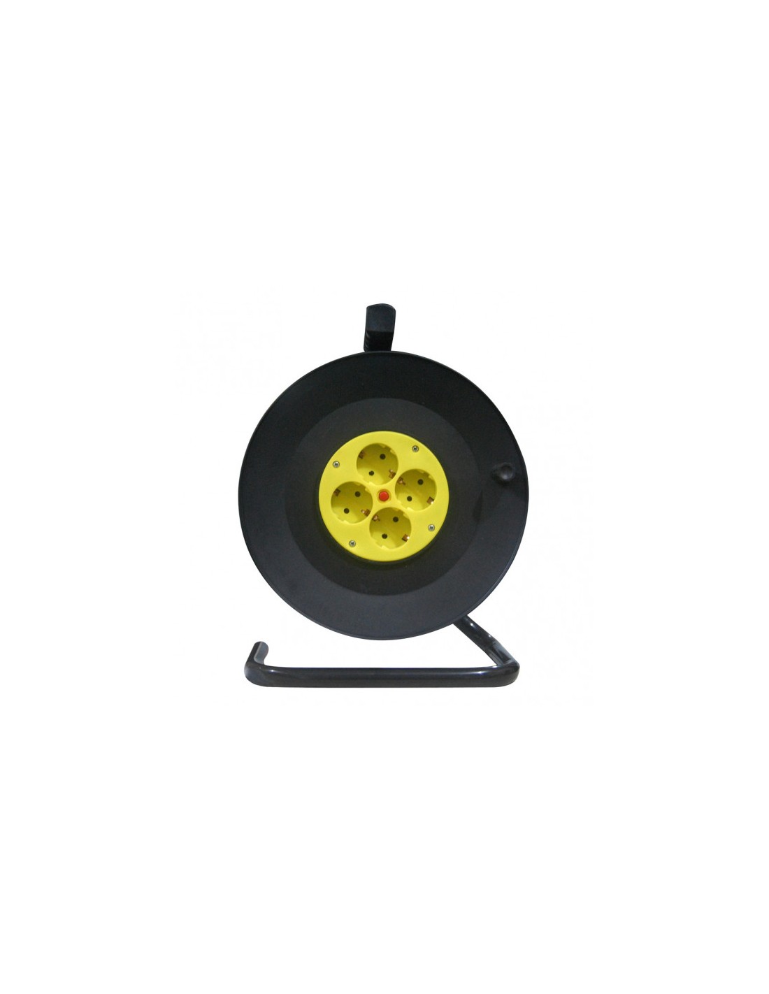 Enrollacable múltiple con 4 enchufes y Termostato de Seguridad, color NEGRO/AMARILLO, con 15 metros de cable flexible de 3 hilos de cobre x 1,5 mm y protección infantil. Con 16 A. Realizado con materiales resistentes como son el polipropileno y el cobre. Con pie y útil asa para transportar, tiene unas dimensiones enrollado de 35x27x19,5 centímetros. Disponible en nuestra web, una amplia gama de alargadores de distintas longitudes de cable, con y sin interruptor de corte, con y sin puerto USB, simples ó múltiples e incluso enrollables.
