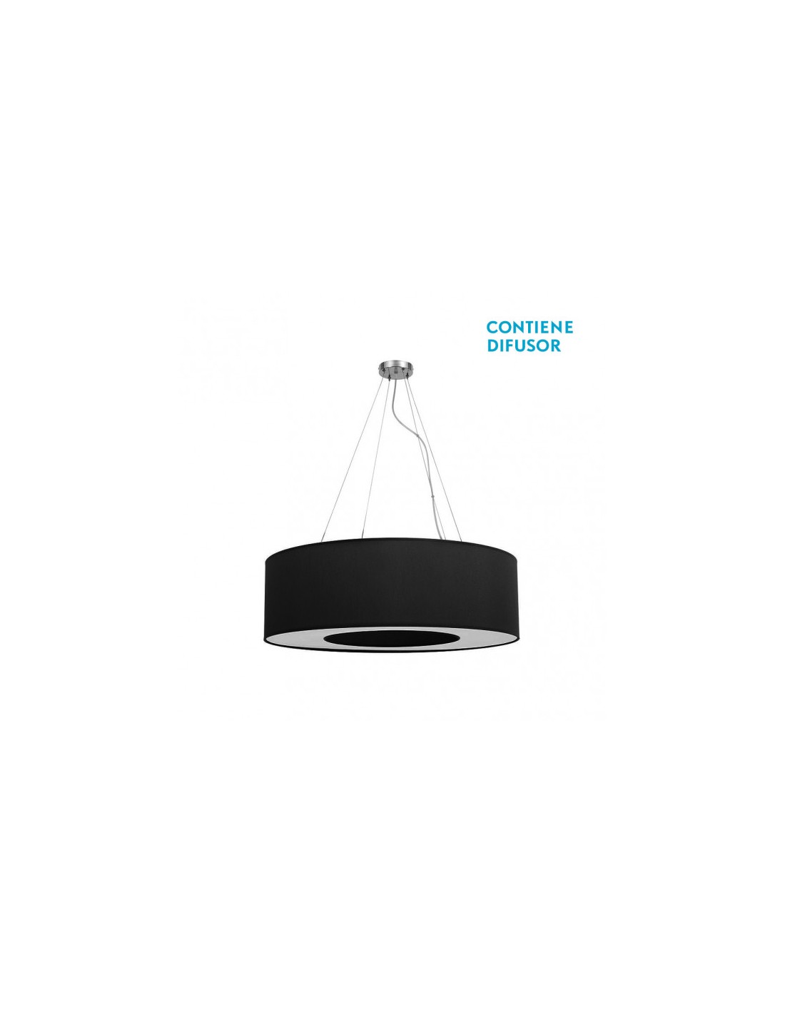 Colgante de techo mediano de la serie HAITI en color CROMO/NEGRO. Realizado en textil y metal. Destaca por su diseño moderno de pantalla cilíndrica con hueco central, como si fuera un gran anillo, viene acoplado también con su difusor. Ideal para decorar en salones y comedores, haciéndose el centro de la habitación que ilumina. Posee cuatro portalámparas E27. Bombillas no incluidas. Tiene unas dimensiones, regulables en altura, de 40<,120x65x65 centímetros. En esta serie podemos encontrar a juego los colgantes de 50, 65 y 80 centímetros de diámetro y los sobremesas, todos en color negro, marrón, piedra, topo, madera gris y madera clara combinados con cromo para adaptar el que mejor quede con su decoración.