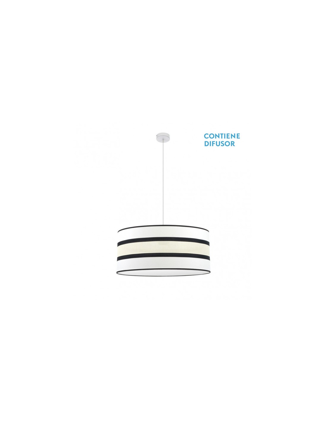 Colgante serie KARLA de color BLANCO con pantalla BLANCO/BEIS y vivo en negro. Realizada en metal y material textil. Destaca su pantalla, por su diseño moderno y la combinación de sus colores. Composición muy elegante compatible con el nuevo estilo Vintage, ideal para iluminar en dormitorios, comedores, salones, despachos y salas de estar. Posee tres portalámparas E27. Bombillas no incluidas. Su dimensión, regulable en altura es de 50<,115x60x60 centímetros. En esta misma serie podemos encontrar a juego los colgantes de 40, 50 y 60 centímetros de diámetro, dos medidas de sobremesas, el pie de salón y lámparas de cuatro, tres y dos luces, todos los modelos también en color topo/beis.