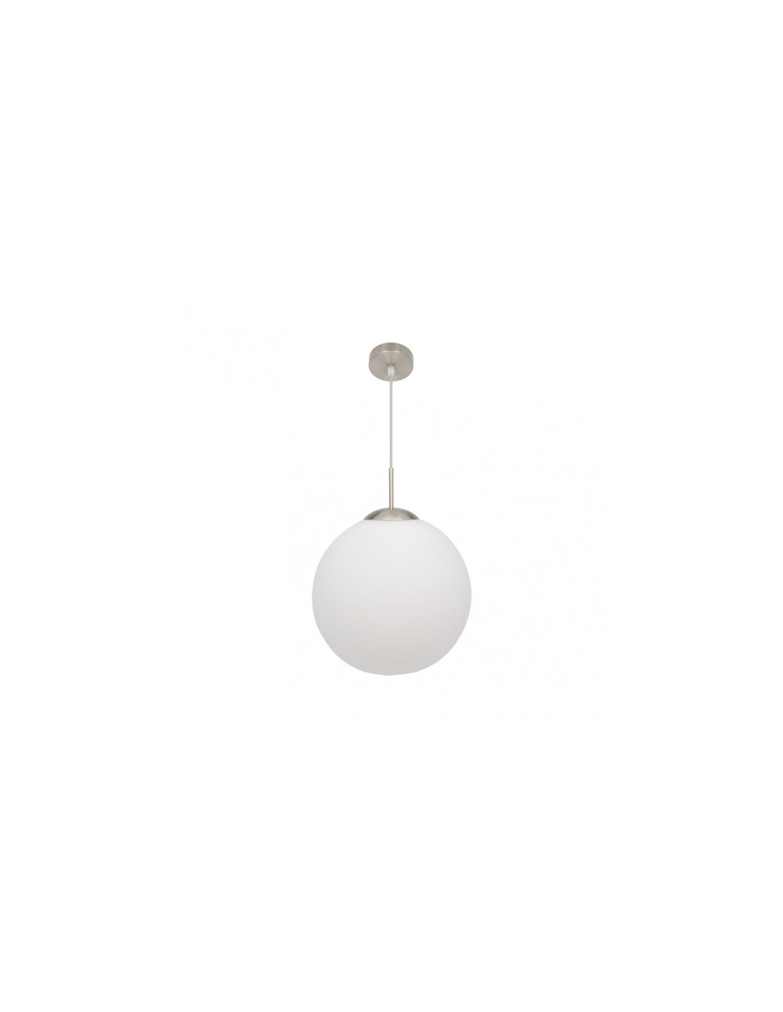 Colgante de la serie ASTRO de color BLANCO/NIQUEL. Compuesto por montura metálica y tulipa esférica de cristal. Presenta un diseño moderno y sencillo. Posee un portalámpara E27. Bombilla no incluida. Tiene unas dimensiones regulables en altura de 50<,135x35x35 centímetros y un peso neto de 1670 gramos. Disponible en esta serie el colgante de 20, 25, 30 y 35 centímetros de diámetro.