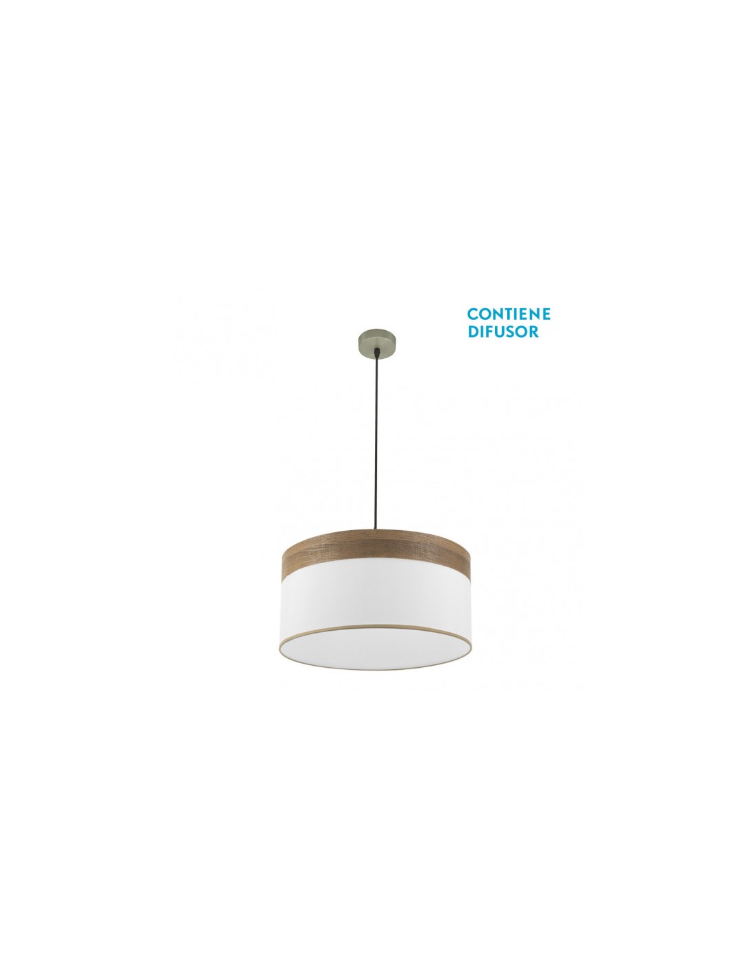Colgante de diseño de la serie CLOE de color CUERO con pantalla BLANCA/MADERA OSCURA. Realizado en metal y textil. De estilo moderno, presenta en su pantalla un contraste de colores, resultando muy original y decorativo para iluminar en dormitorios, comedores, salones y zonas de trabajo, creando un ambiente diferente. Posee dos portalámparas E27. Bombilla no incluida. Su pantalla tiene un diámetro de 50 centímetros, con altura regulable, el colgante tiene unas dimensiones de 47<,110x50x50 centímetros. En esta serie, encontramos a juego los colgantes de 40 y 50 centímetros de diámetro, regleta de 3 luces, plafón de 3 luces, lámparas de 2, 3 y 4 luces, el pie de salón, y un tamaño de sobremesa, todas las versiones combinando el color blanco con los colores de madera: madera clara, madera oscura, madera gris y madera negra. Una amplia gama para elegir el que mejor se adapte a su decoración dando un toque de color a la estancia que ilumina.