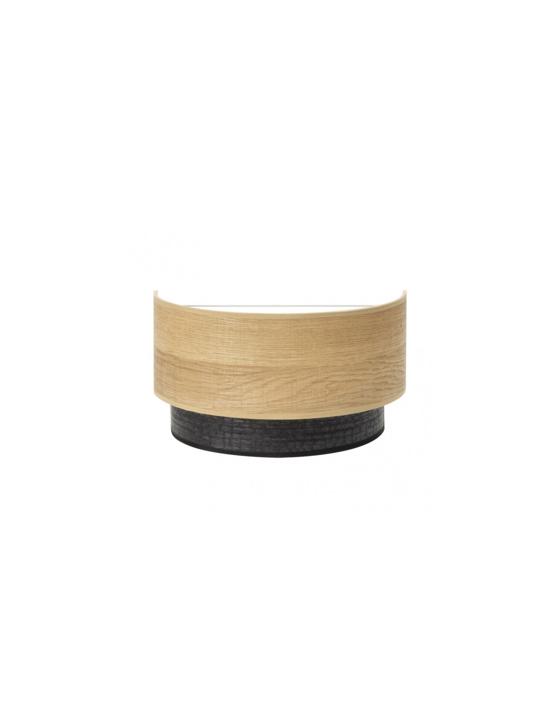 Aplique de diseño compuesto por dos pantallas de la serie COLET de color NEGRO/MADERA CLARA. Realizado en metal y textil, de estilo moderno, presenta dos pantallas de distinto tamaño, simulan madera, combinando colores y texturas resultando una composición muy original y decorativa para iluminar en dormitorios, salones, entradas y zonas de trabajo. Posee un portalámparas E27. Bombilla no incluida. Tiene unas dimensiones de 17x30x15 centímetros. En esta serie, encontramos a juego los colgantes de 40,50 y 60 centímetros de diámetro, el pie de salón, apliques y dos tamaños de sobremesas, todas las versiones combinando el negro con madera clara, madera gris o madera oscura, una amplia gama para elegir el que mejor se adapte a su decoración.