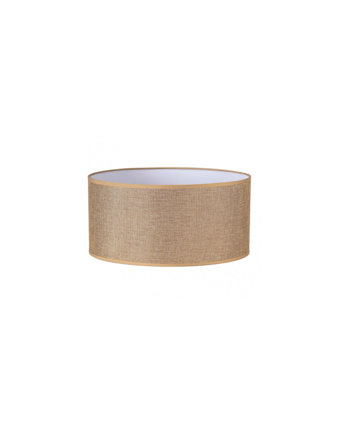 Pantalla cilíndrica de la serie JIN de color MARRON. Realizado en material textil de saco-yute. Diseñada para agarre M10. Sus dimensiones son de 60Dx60dx30h centímetros. Disponibles las pantallas de esta serie en varios tamaños.