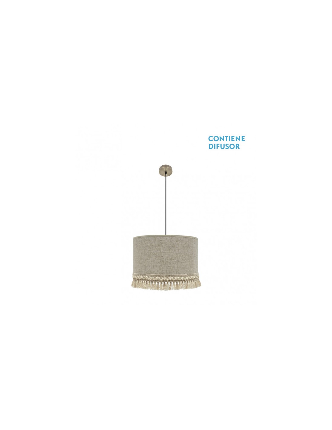 Colgante de la serie VERA de color CUERO/BEIS. Posee tres portalámparas E27. Bombillas no incluidas. Con pantalla cilíndrica confeccionada con tejido de lino rayado y terminando con una bonita pasamanería de flecos. De estilo moderno y diseño elegante, ideal para decorar e iluminar en dormitorios, entraditas, salones y salas de estar, aportando calidez a la estancia que ilumina. Tiene unas dimensiones, regulables en altura, de 58<,120x60x60 centímetros. En esta serie podemos encontrar los colgantes de 60, 50 y 40 centímetros de diámetros, dos tamaños diferentes de sobremesas, y el pie de salón, todos combinando el tejido beis con blanco o cuero.