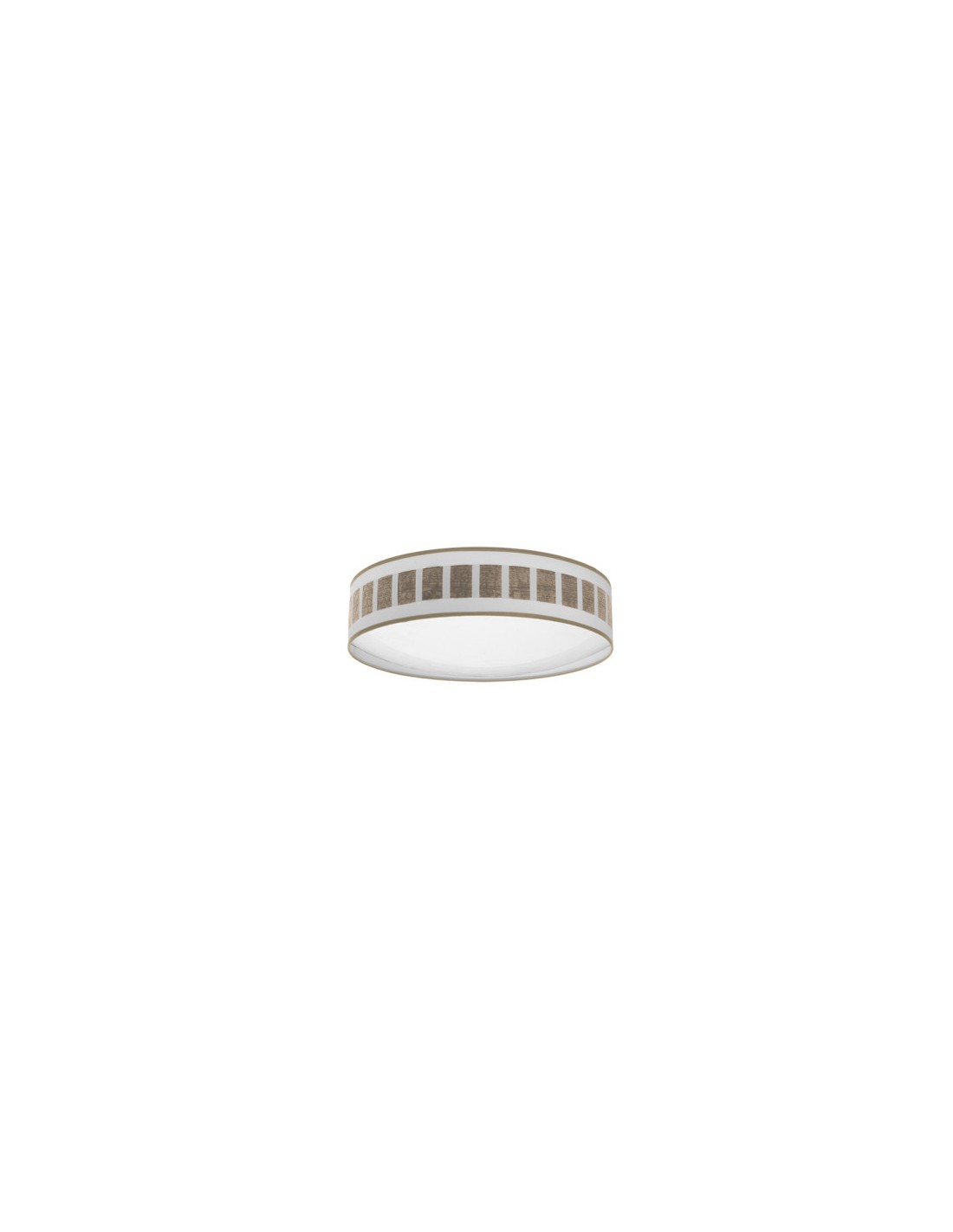 Plafón de la serie IVANNA de color BLANCO/MADERA CLARA. Compuesto por pantalla y plafón de la serie CALIGULA. Posee TECNOLOGÍA LED INTEGRADO con 72 watios de potencia, 5616 lúmenes y TRES TEMPERATURAS SELECCIONABLES DESDE EL INTERRUPTOR DE LA LUZ (3000ºK-4000ºK-6500ºK), luz cálida, blanco neutro y blanco frío, con lo que aporta un gran ahorro de energía. Destaca su original pantalla cilíndrica con entredós y pasa cinta en colores madera, resultando una combinación muy moderna y elegante, ideal para iluminar y decorar en entraditas, dormitorios, despachos, salones y salas de estar. Muy acorde tanto para decoraciones rústicas como modernas o vintage. Tiene unas dimensiones de 14x50x50 centímetros. En esta serie podemos encontrar los colgantes de 60, 50, 40 y 30 centímetros de diámetro, dos tamaños diferentes de sobremesas, aplique, plafones de 48, 72 y 96 watios y el pie de salón, todos combinando con colores madera.