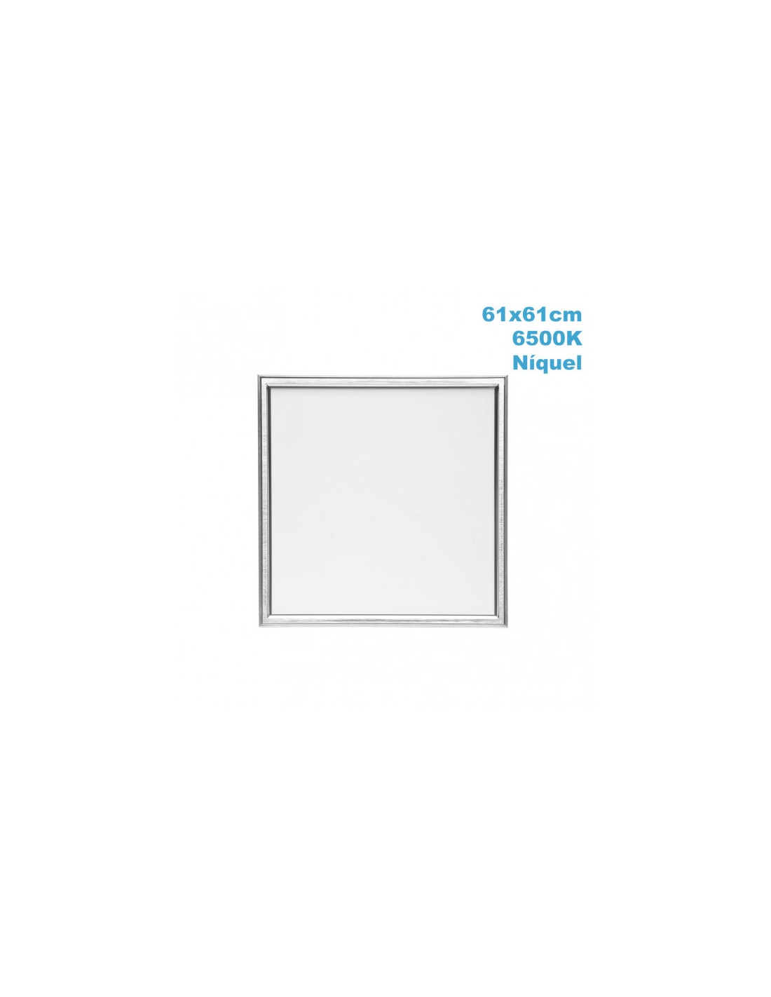 Panel de superficie de la serie LADON en color NIQUEL. Realizado en metal y policarbonato. Posee una potencia de 36 watios, 2600 lúmenes y 6500K de temperatura de luz, blanco frío. De diseño moderno y fácil instalación. Tiene unas dimensiones de 4X61X61 centímetros. En esta serie podemos encontrar paneles de superficie de 36 y de 48 watios.