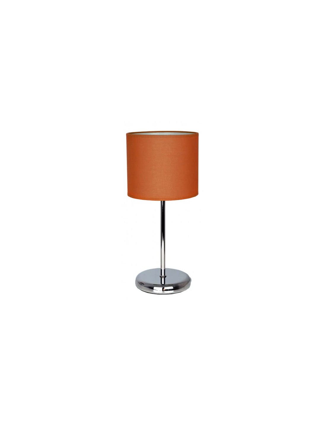 Sobremesa serie ADRIATICO con cuerpo en metal cromado y pantalla de tela color naranja. Con portalámparas E14, tiene unas medidas de 37x17x17 centímetros y un peso neto de 770 gramos.