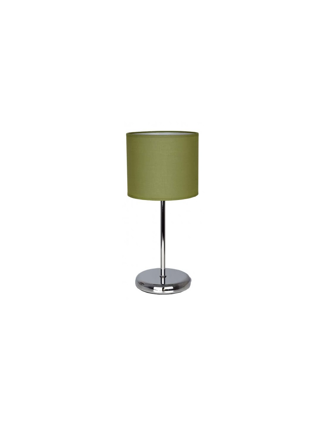 Sobremesa serie ADRIATICO con cuerpo en metal cromado y pantalla de tela color verde. Con portalámparas E14, tiene unas medidas de 37x17x17 centímetros y un peso neto de 770 gramos.