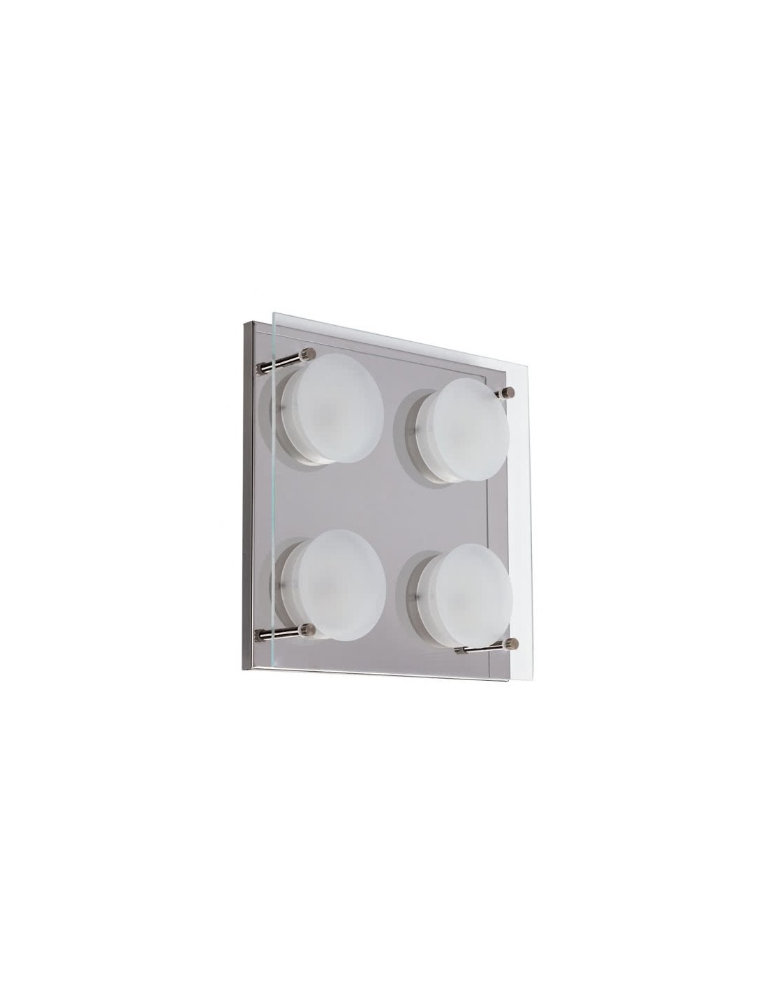 Moderno plafón de LED integrado de la serie ANTIOQUÍA. Su base es de metal cromado atornillado con un cristal que lo adorna. Tiene una potencia de 24 watios, 1600 lúmenes y 4000K. Con forma cuadrada sus medidas son 5,5x22x22 centímetros y tiene un peso neto de 880 gramos.
