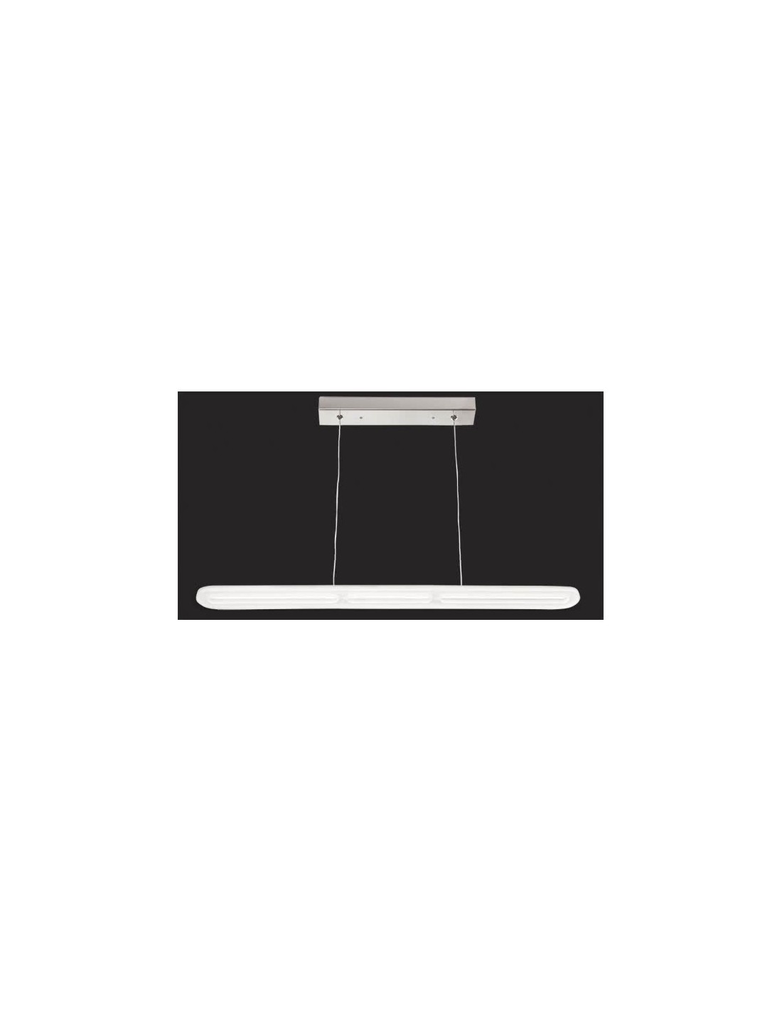 Colgante de techo de LED de la serie COLISEO con base rectangular en metal cromado. Esta base que va sujeta al techo tiene una medida de 40x5x3 centímetros. Su pantalla es de metacrilato con una medida de 90x8x1,5 centímetros y tiene una potencia de luz de 36 watios, 2880 lúmenes y 4000 K. Este colgante es regulable entre 10 y 110 centímetros de altura y su peso neto es de 1380 gramos.
