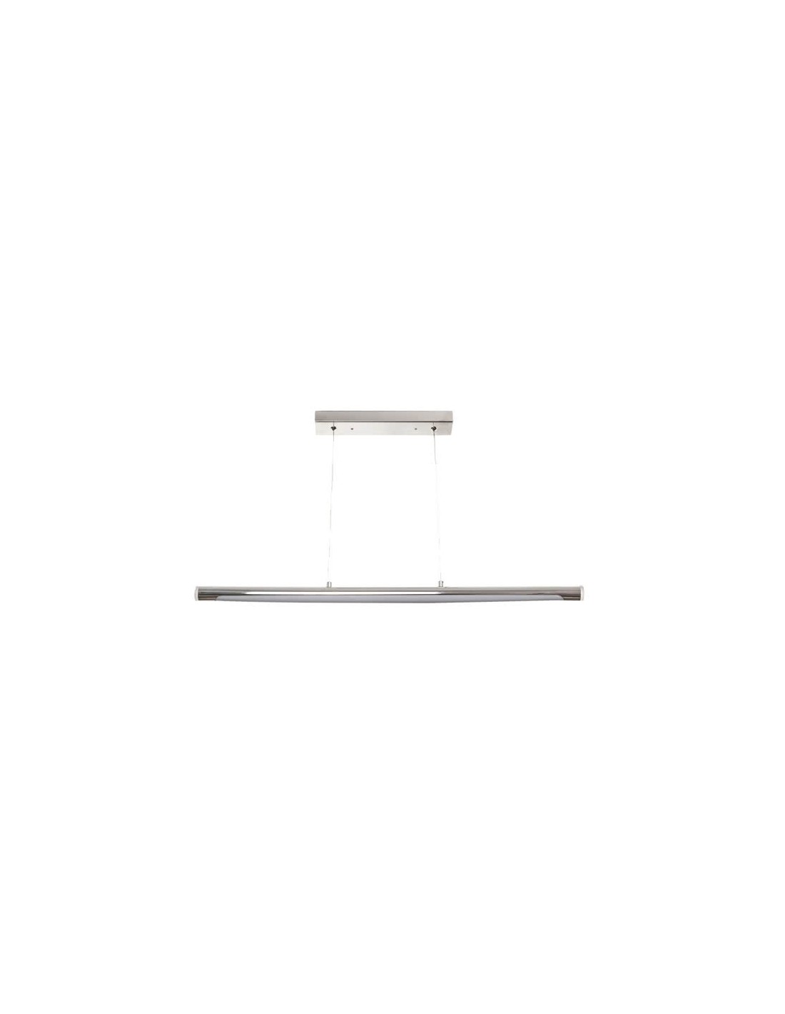 Colgante con tecnología LED integrada de la serie GIZA, realizado en metal cromado. Su base rectangular para sujetar al techo tiene una medida de 30x5x3 centímetros. Su altura es regulable entre 10 y 105 centímetros, y la medida del tubo es de 71x3 centímetros. Su potencia de luz es de 16 watios, 1280 lúmenes y 4000K. Y tiene un peso neto de 810 gramos.