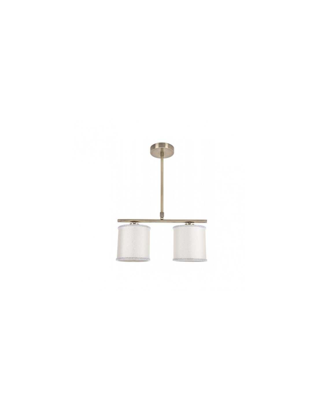 Lámpara de dos luces serie Santa María en color CUERO/BLANCO. Esta elegante lámpara combina el material textil y metal. Las pantallas destacan por pedrería brillante que aporta gran elegancia. Sus dimensiones son 55<,80x40x14 cm (altura regulable) y su peso neto 780 gr. Utiliza dos portalámparas E14. Bombillas no incluidas. Puede completar la iluminación de su hogar con la serie completa compuesta por el colgante de dos y tres luces del mismo color.