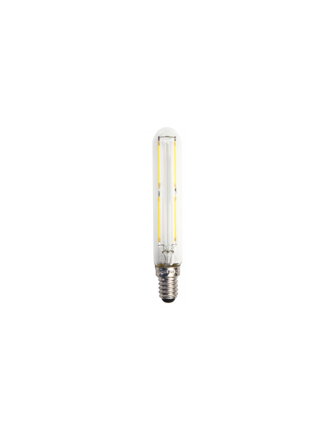 Bombilla de filamentos de la serie SKYLENSE con portalámparas E14 ,4 watios de potencia, 400 lúmenes y 2700 ºk (color de luz de luz cálido). Diseñada especialmente para espacios reducidos donde una bombilla estándar no tiene cabida. Sus dimensiones son 21,1X2X2 centímetros. Realizada en cristal.