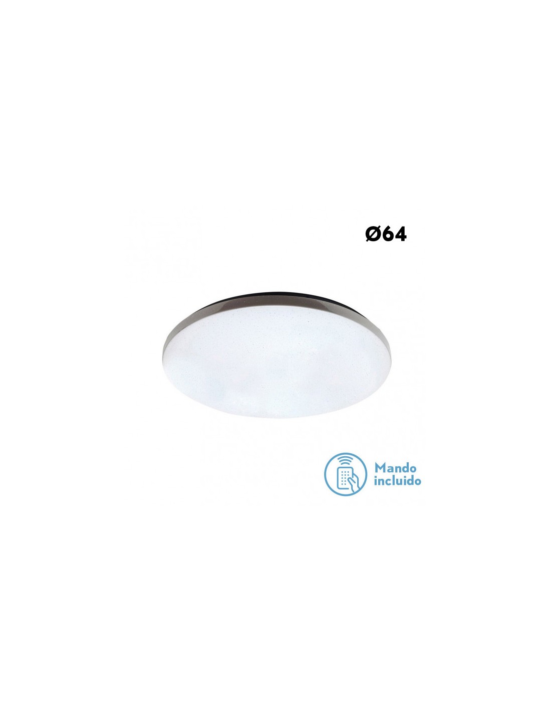 Plafón redondo serie Amaranto de color blanco. Está realizado en policarbonato. Posee tecnología de Led Integrado con 50 W de potencia, 3500 lúmenes y color de luz seleccionable en tres temperaturas de color (3000ºk, 4000ºk, 6000ºk). Su diámetro es de 64 cm. Mando a distancia INCLUIDO.
