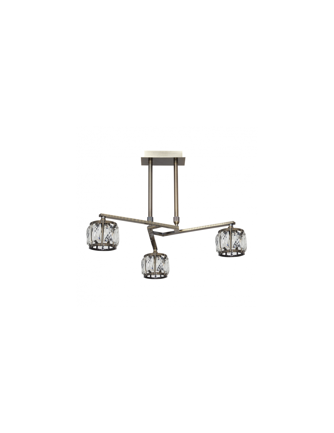 Lámpara serie ALARGOS color cuero. Armazón realizado en metal y cristal. Ideal para salones de tamaño mediano decorado en tonos maderas y cálidos. Utiliza tres porta lámparas G9.