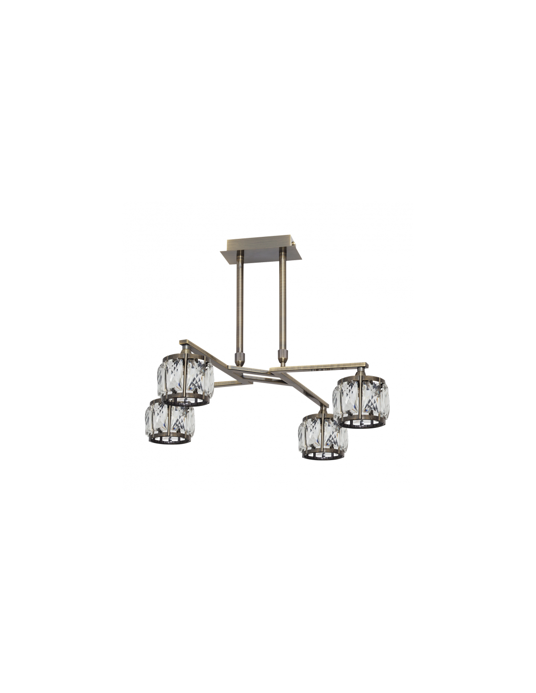 Lámpara serie ALARGOS color cuero. Armazón realizado en metal y pequeñas tulipas de cristal. Utiliza cuatro porta lámparas G9 y es ideal para salones con decoración moderna.