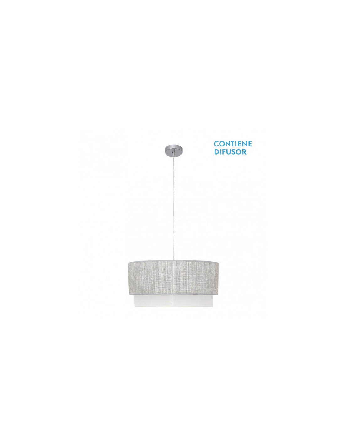 Colgante de la serie KENYA en color GRIS/BLANCO. Posee tres porta lámparas E27. Bombillas no incluidas. Tiene unas dimensiones, regulables en altura, de 30<,85x50x50 centímetros. Puede combinarlo con el colgante de 40 cm, lámpara de dos, tres y cuatro luces, sobremesa y pie salón, tanto en la combinación gris/blanco como en blanco/gris.