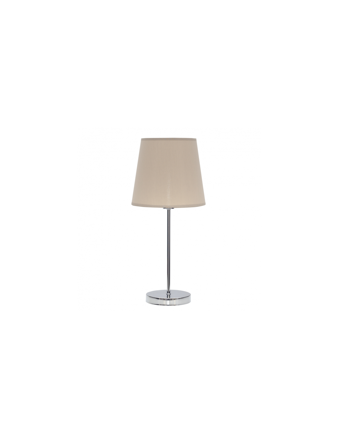 Sobremesa de la serie MALDIVAS en color CROMO/PIEDRA. Realizado en textil y metal. Posee un porta lámparas E14. Bombilla no incluida. Tiene unas dimensiones de 46x20x20 centímetros. En esta serie encontramos pie de salón, sobremesa y colgantes de 40 cm y 35 cm de diámetro, todos con combinaciones de colores con metales de color cromo, níquel, marrón, cuero y blanco, para elegir la que mejor se adapte a su decoración.