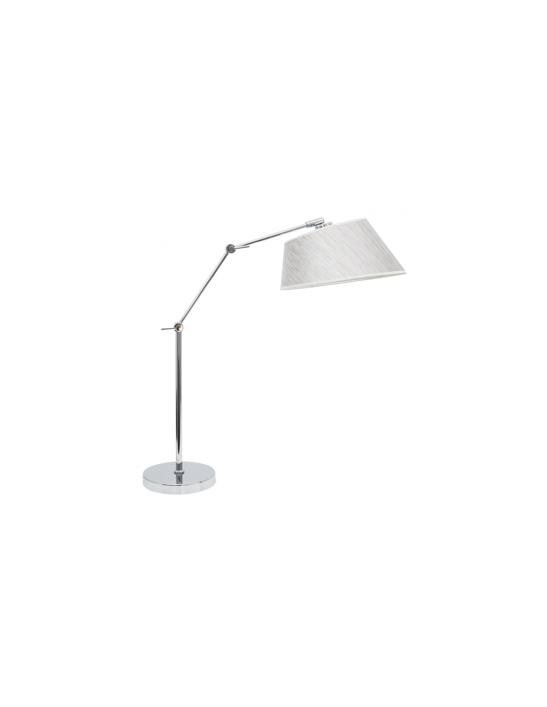Sobremesa articulable SUMATRA en color GRIS/CROMO, realizado en metal y pantalla textil. Armazón articulable por dos secciones, con lo que se consigue el campo de iluminación deseado en cada momento. De estilo moderno y original, ideal para cualquier rincón de salones, salas o incluso espacios de trabajo. Tiene unas dimensiones de 62x45x30 centímetros. Posee un portalámparas E27. Bombilla no incluida. Puede combinarlo con el pie de salón, aplique y colgante de la misma serie.