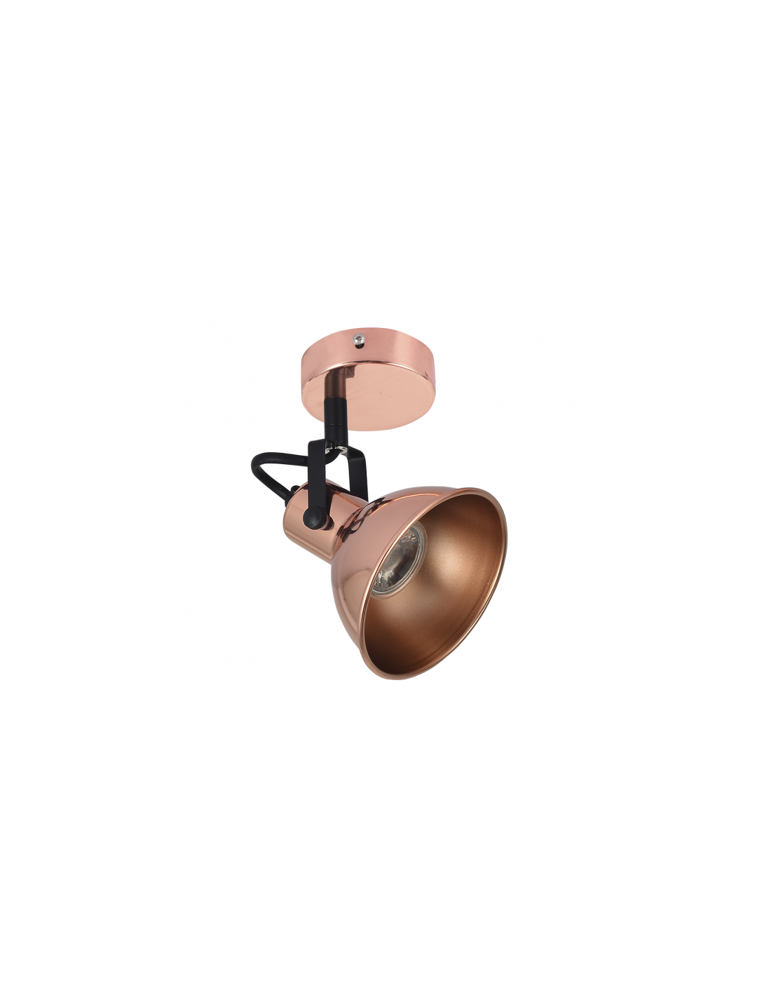 Foco serie Arabia. Realizado en metal de color COBRE/NEGRO, con un portalámparas GU10 y cuerpo orientable. Bombilla no incluida. Está disponible también la regleta de dos y cuatro luces y plafón de tres luces en los colores negro/cobre y cobre/negro. Es ideal para crear un punto de luz ambiente. Sus dimensiones son 15x12x12 cm y su peso neto 285 g.